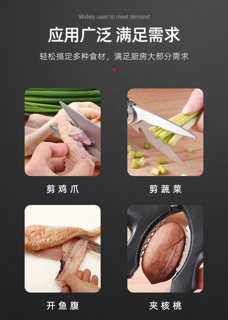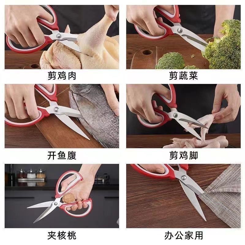 【13.9到手三把!多功能家用剪刀】日常家居小帮手,轻松搞定多种食材,满足厨房大部分需求,办公/日常/厨房均可使用,德国敲肉剪骨头不锈钢家用剪刀L