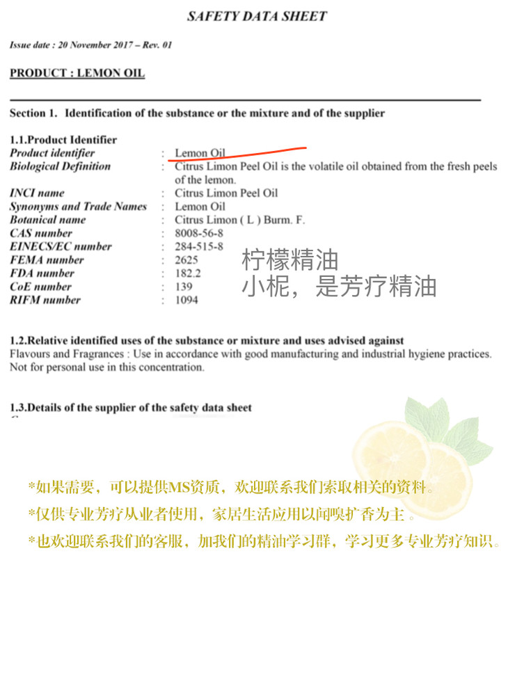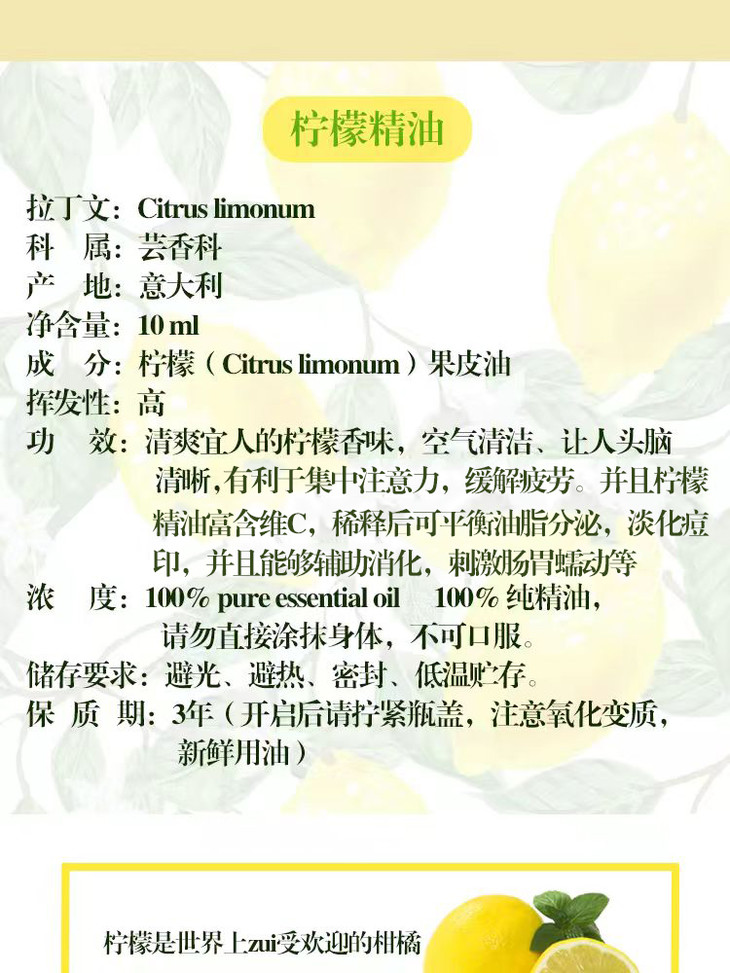 意大利 【柠檬】精油 单方纯精油 清新 扩香/熏香/调油