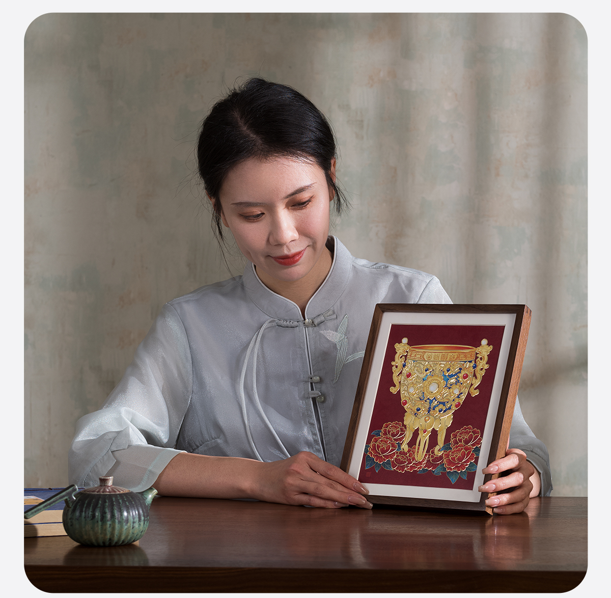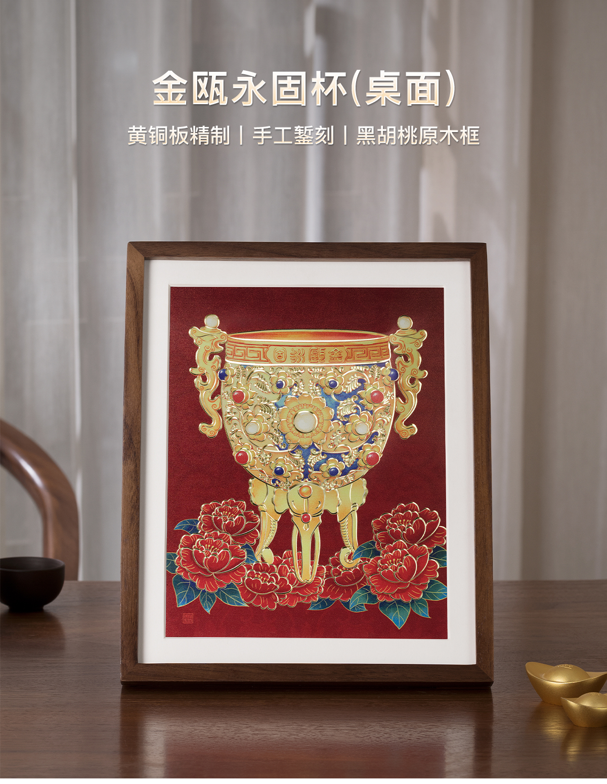 铜师傅 手工錾刻 铜雕画《金瓯永固杯(桌面)》书房办公室装饰画