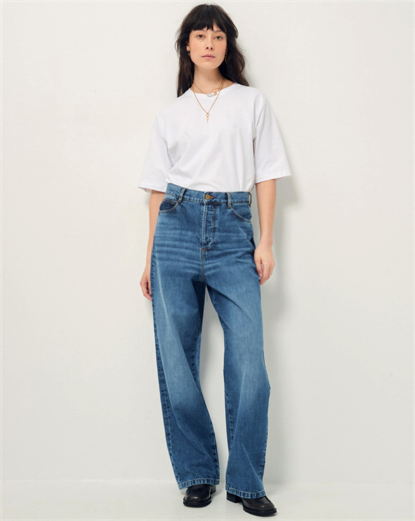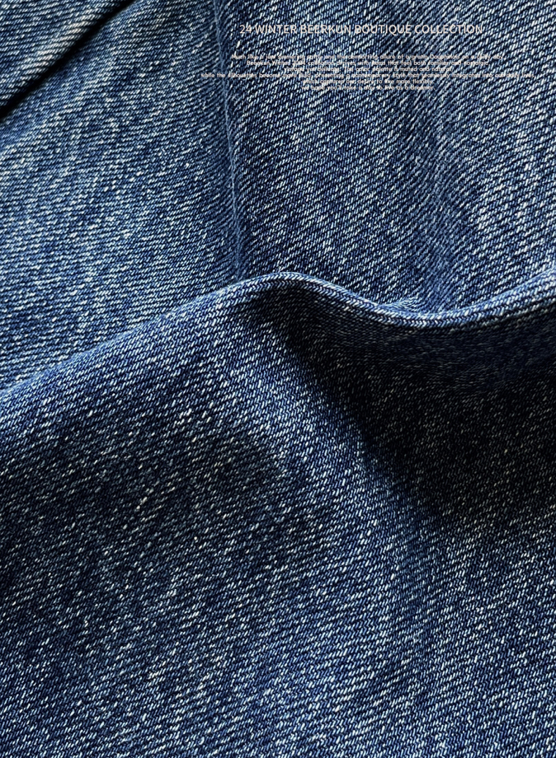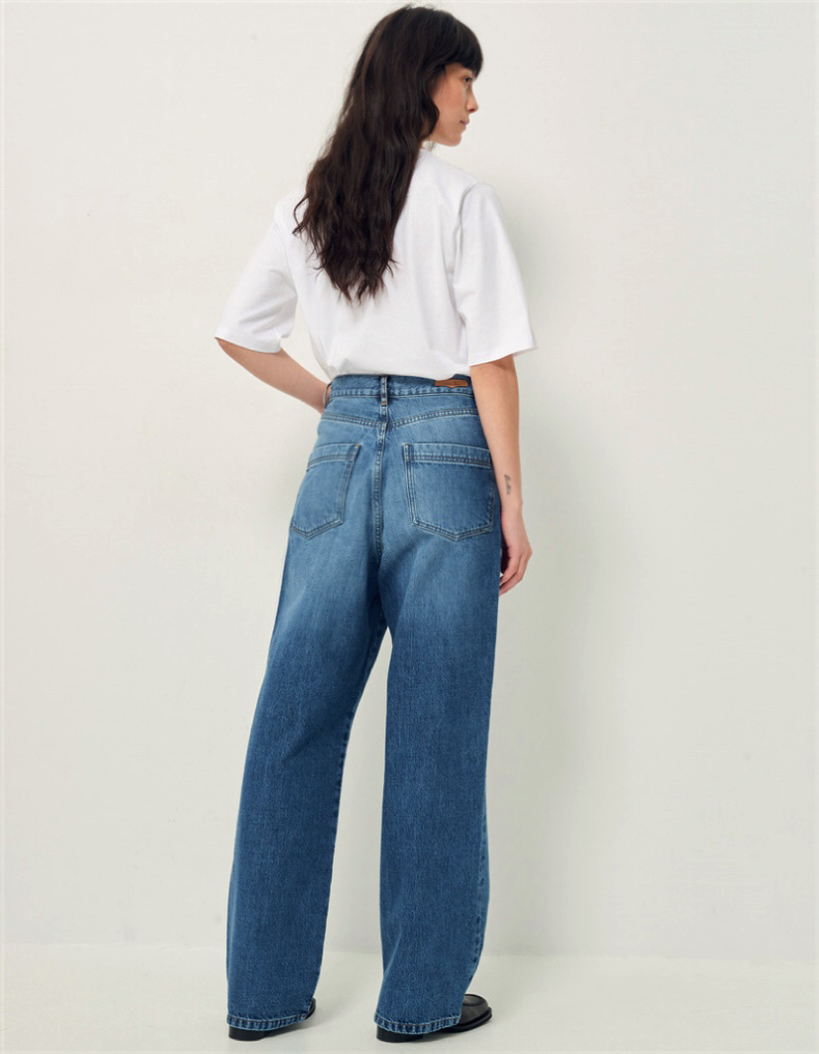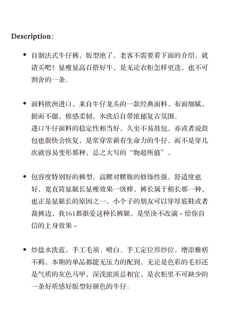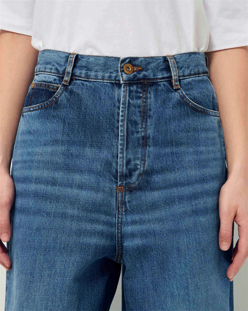 [特价]法式雅痞调水洗蓝高腰宽松直筒牛仔裤 深蓝色 多尺码可选