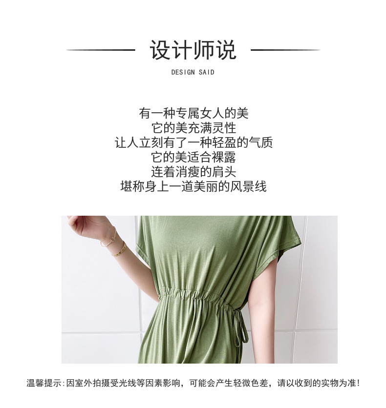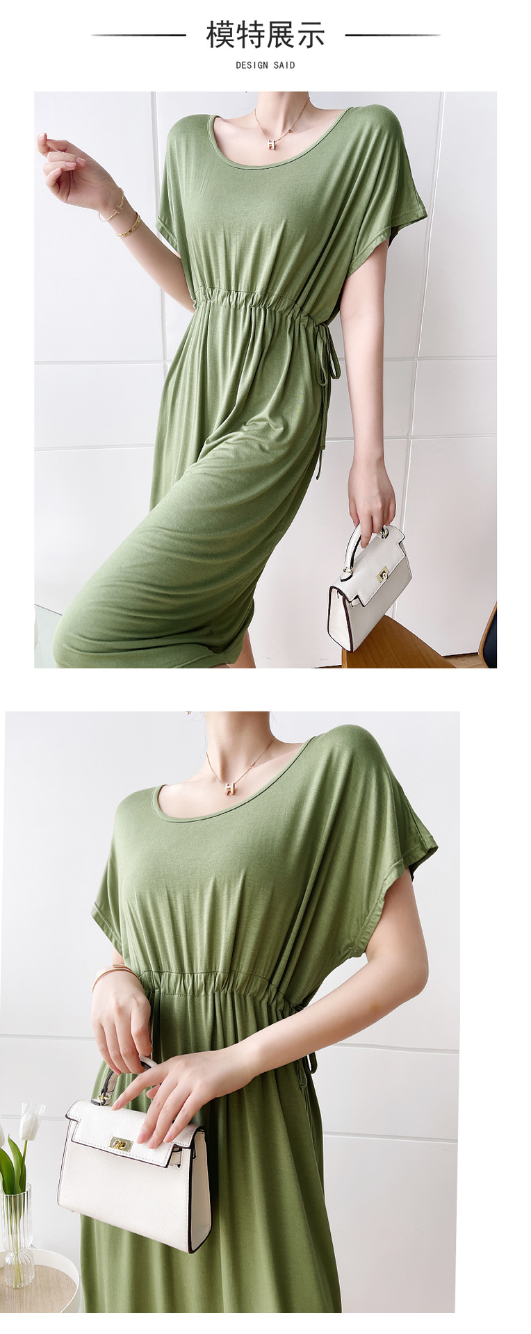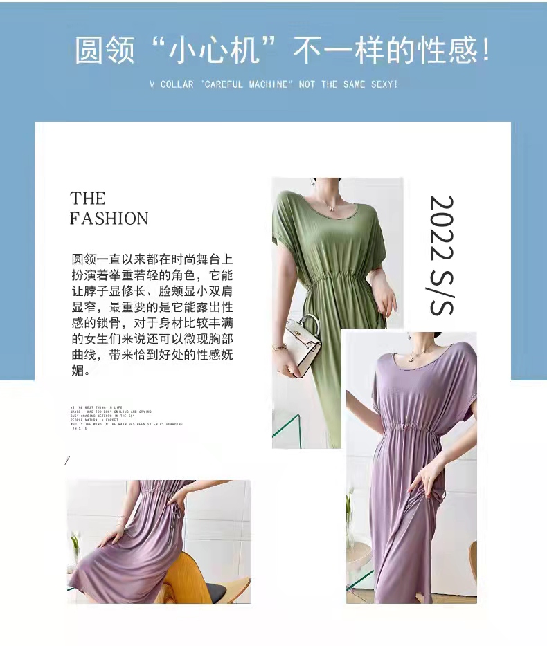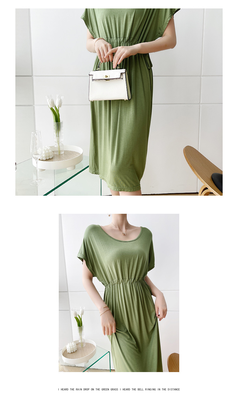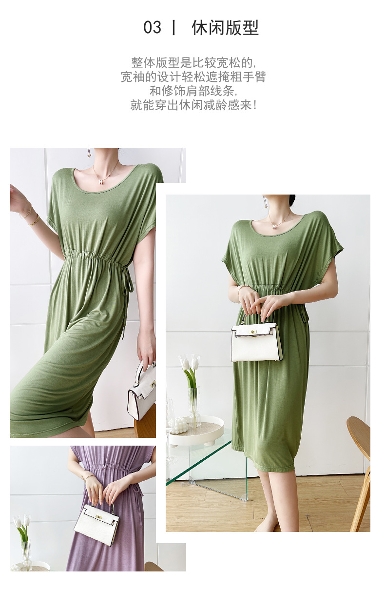 【清凉一夏】2022夏季新款莫代尔长裙短袖宽松 大U领口 清凉透气不闷汗 显瘦显高连衣裙