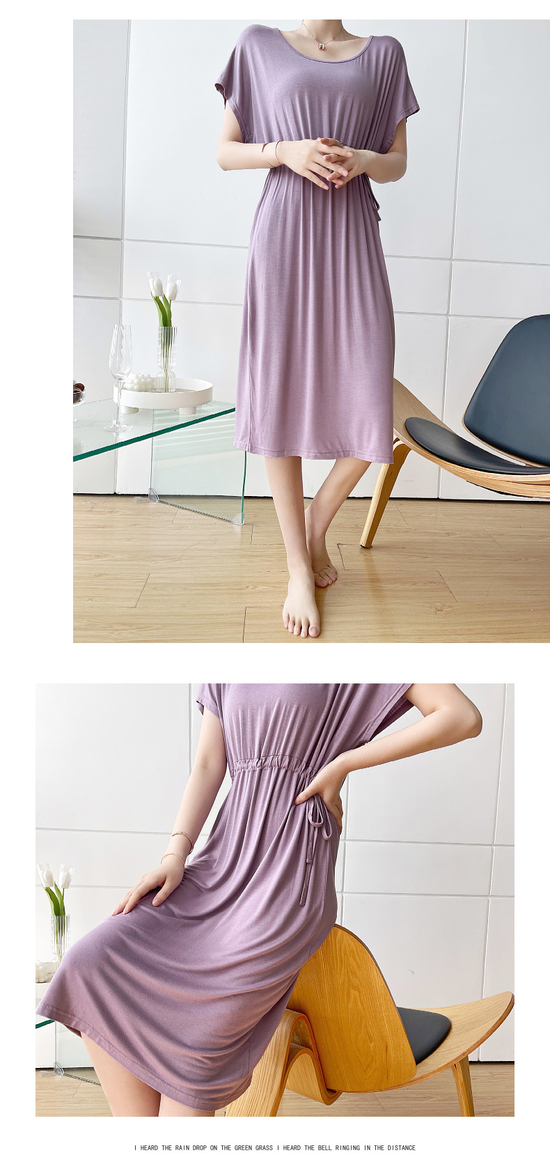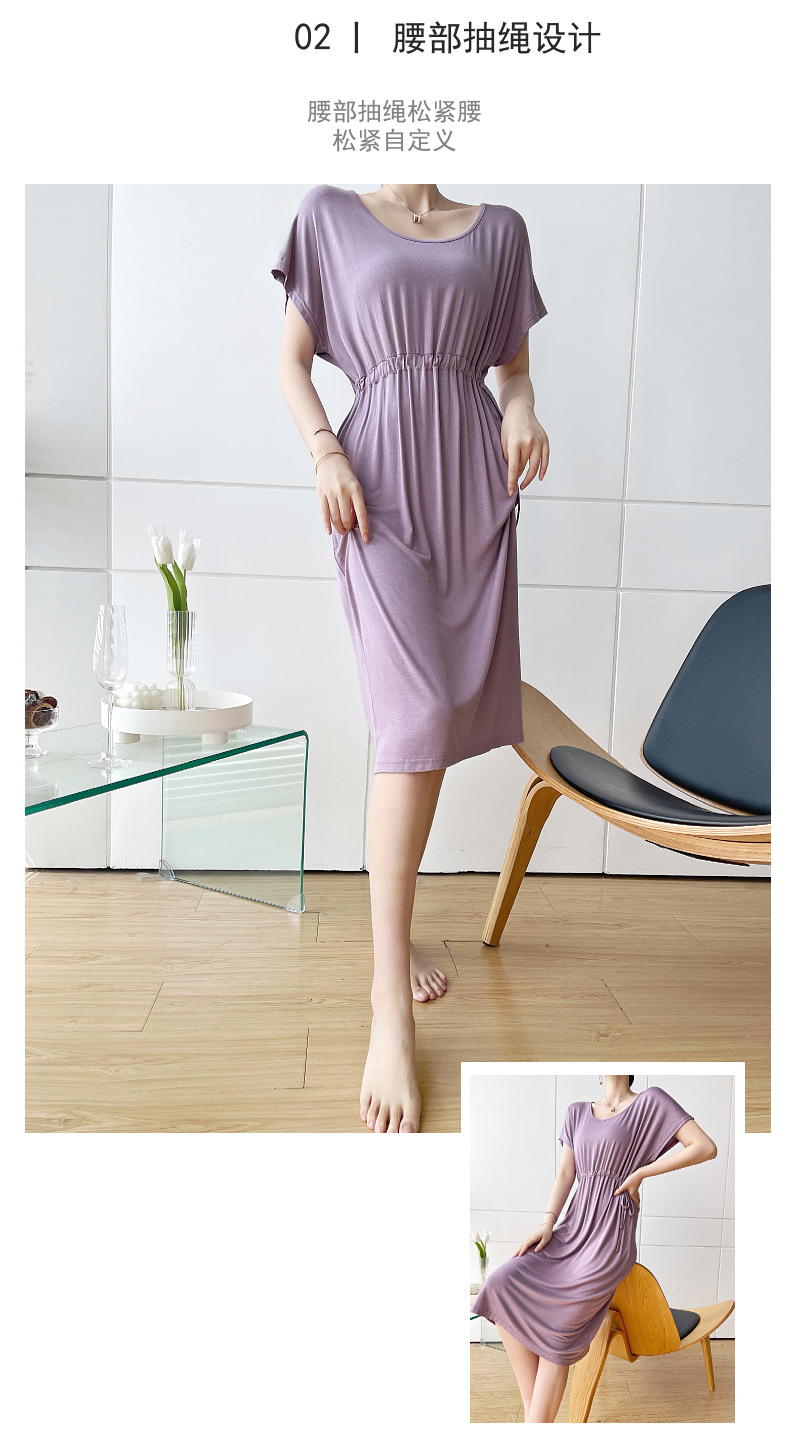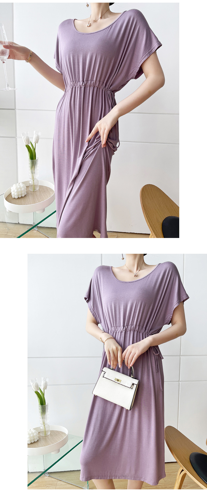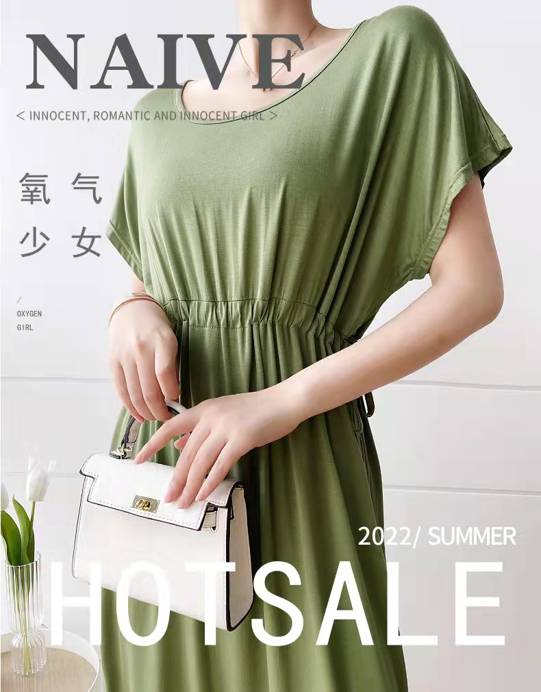 【清凉一夏】2022夏季新款莫代尔长裙短袖宽松 大U领口 清凉透气不闷汗 显瘦显高连衣裙