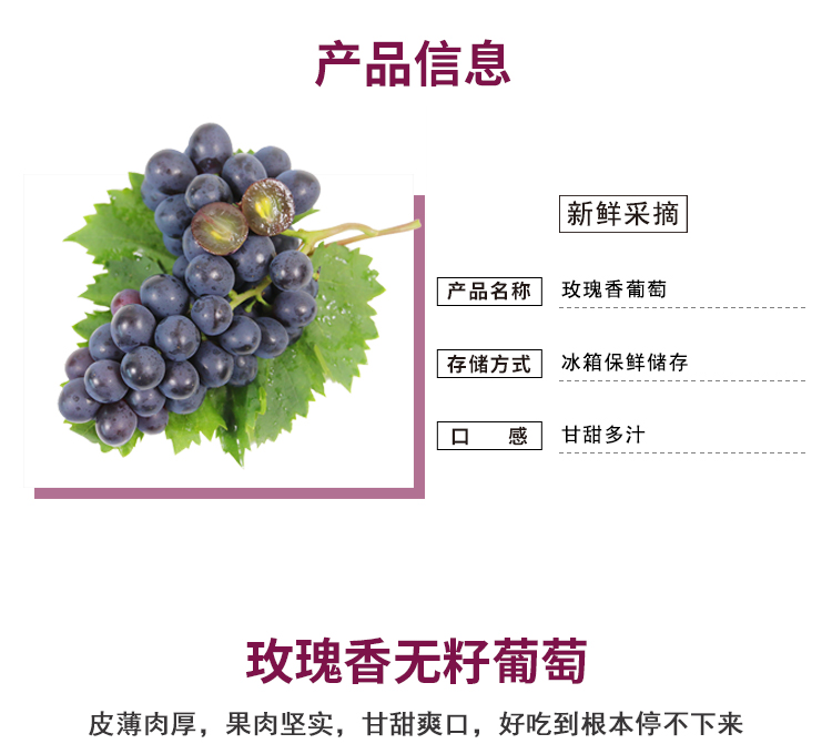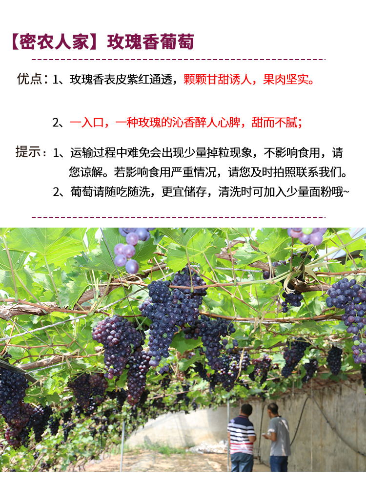 现摘玫瑰香葡萄 无籽葡萄 甜蜜多汁 新鲜水果 500g/份 拍2份包邮