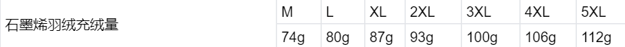 充绒量具体如下:
