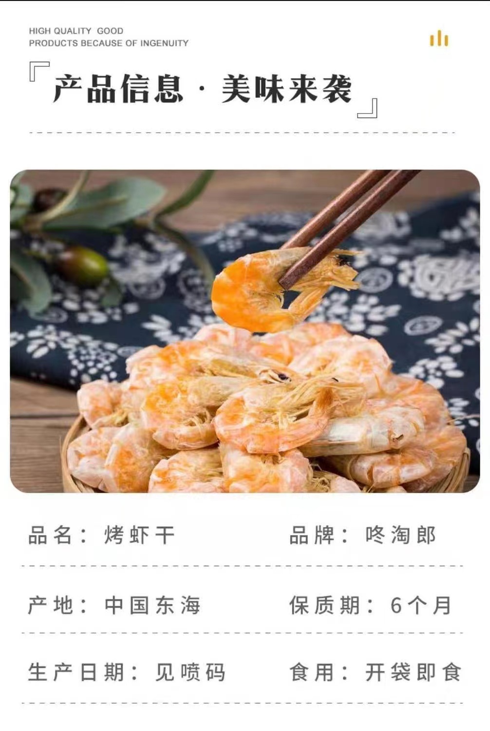 咚淘郎烤虾干海味干货儿童孕妇补钙250g/包【洞头特产】