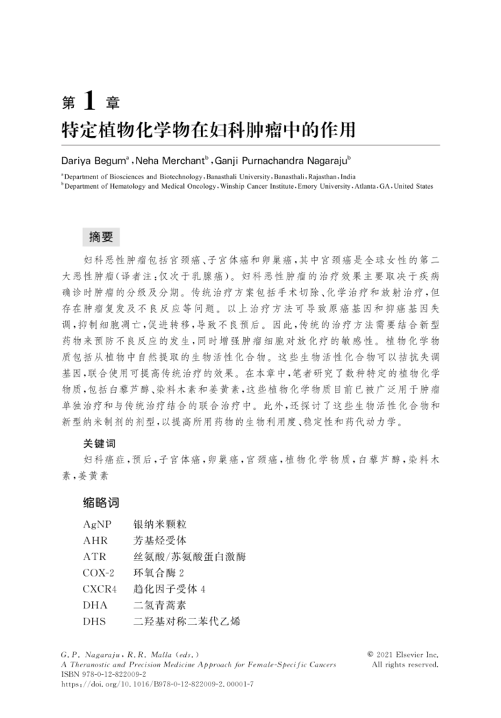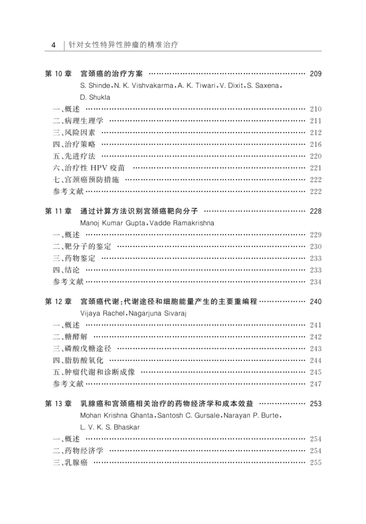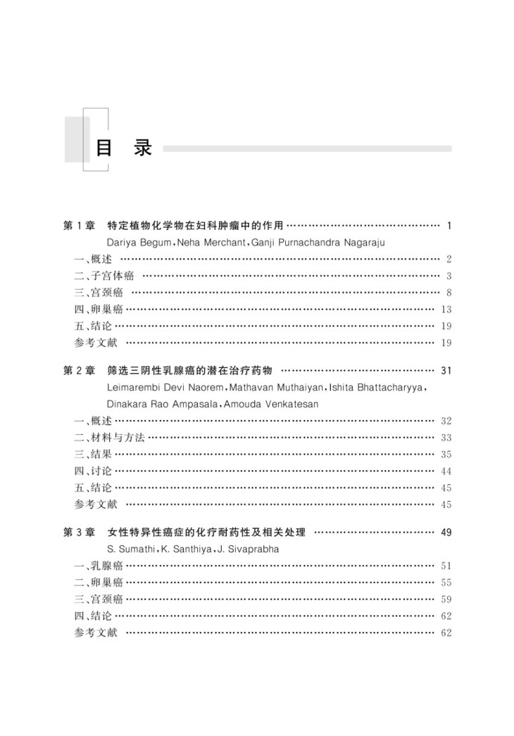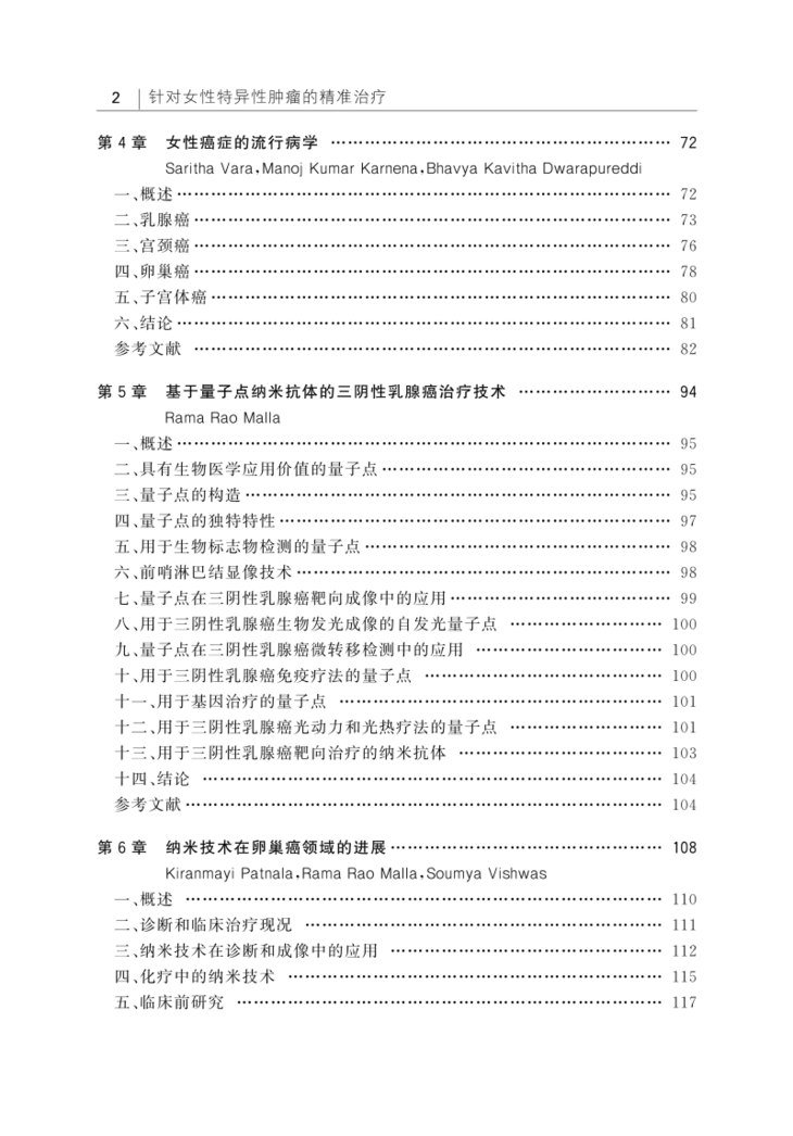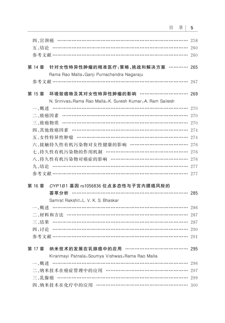 本书由印度甘地技术与管理学院的 RamaRaoMalla教授和美国埃默里大学医学院的anjiPurnachandraNagaraju教授编撰。全书系统梳理了乳腺癌、宫颈癌、卵巢癌和子宫内膜癌等女性特异性肿瘤(FSC)的最新研究进展与精准诊疗策略。基于基因、表观遗传及分子通路研究,本书深入解析了FSC的复杂发病机制,包括致癌/抑癌miRNA表达失调、甲基化模式异常及激酶信号通路激活等关键分子事件,为新型生物标志物开发和靶向治疗设计提供了重要依据。