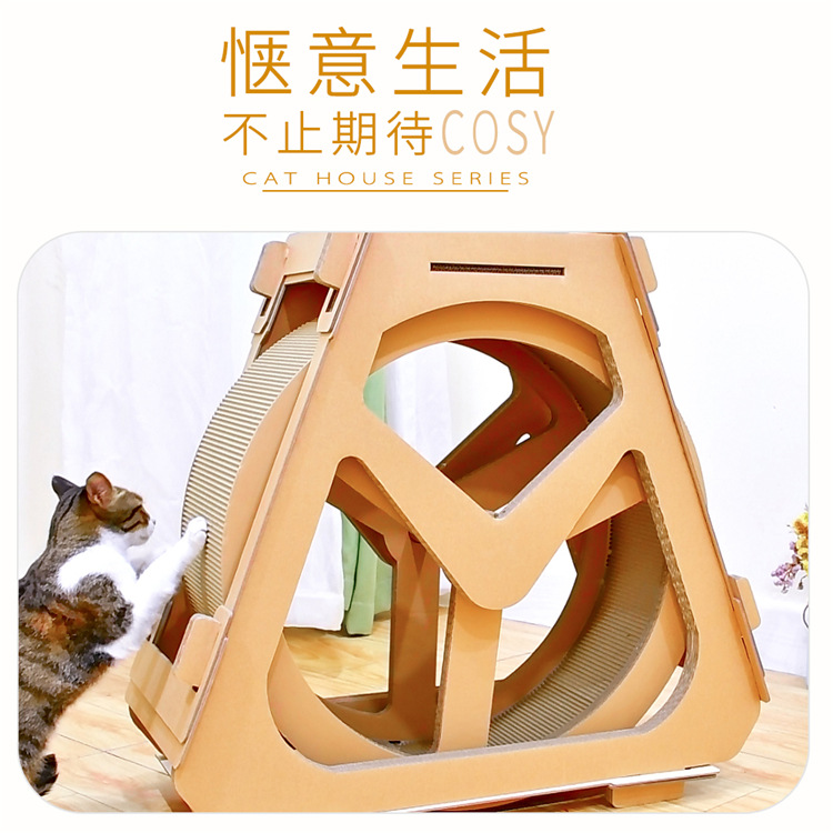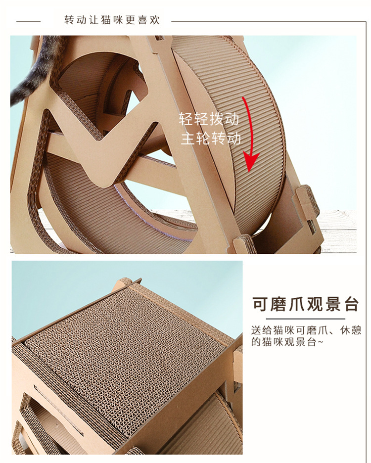 【趣味水车摩天轮 休息玩耍两不误】得酷 瓦楞纸运动跑步机摩天轮宠物家具猫抓板抓爬架子滚轮转动