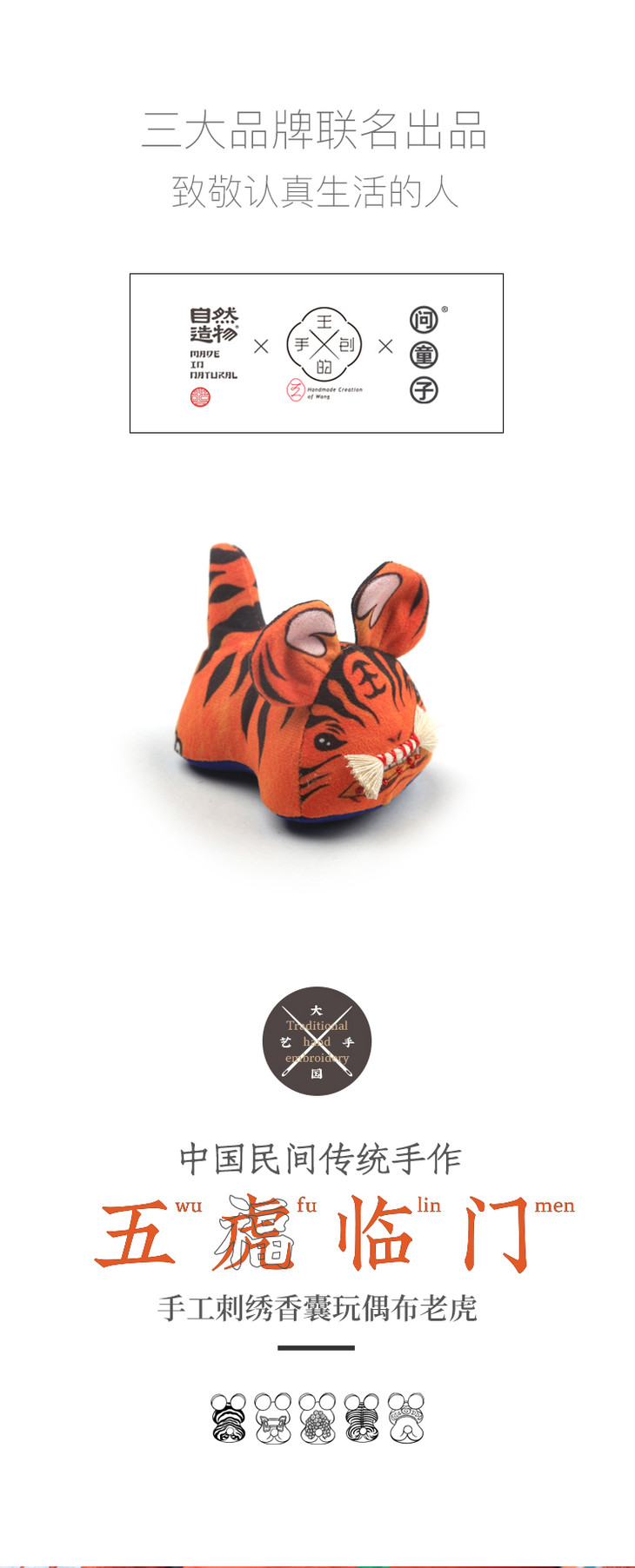 自然造物五虎临门原创特色手工艺布老虎玩偶饰品挂件创意礼盒