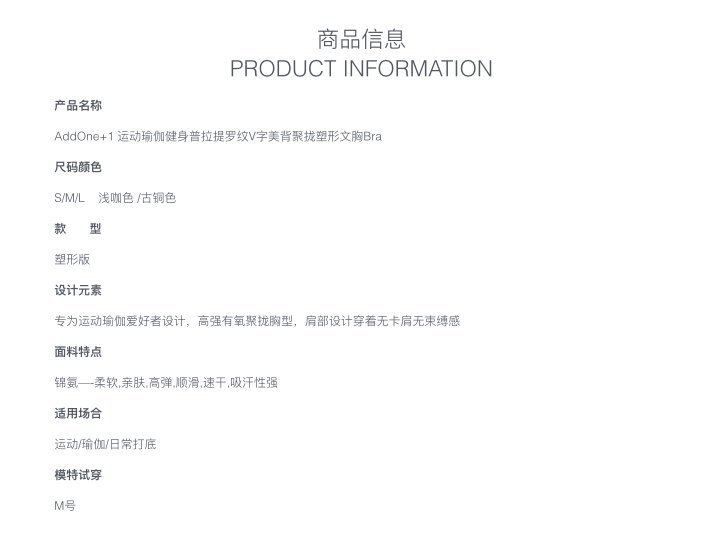 AddOne +1 运动瑜伽健身普拉提裸感高弹塑性细螺纹V领文胸Bra
