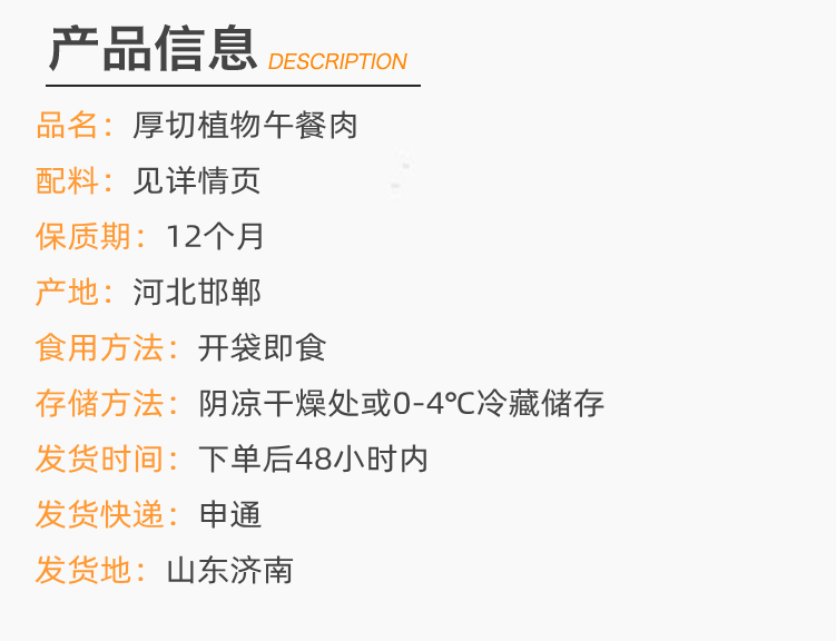 植得吃 厚切植物午餐肉 经典原味 50g*6袋