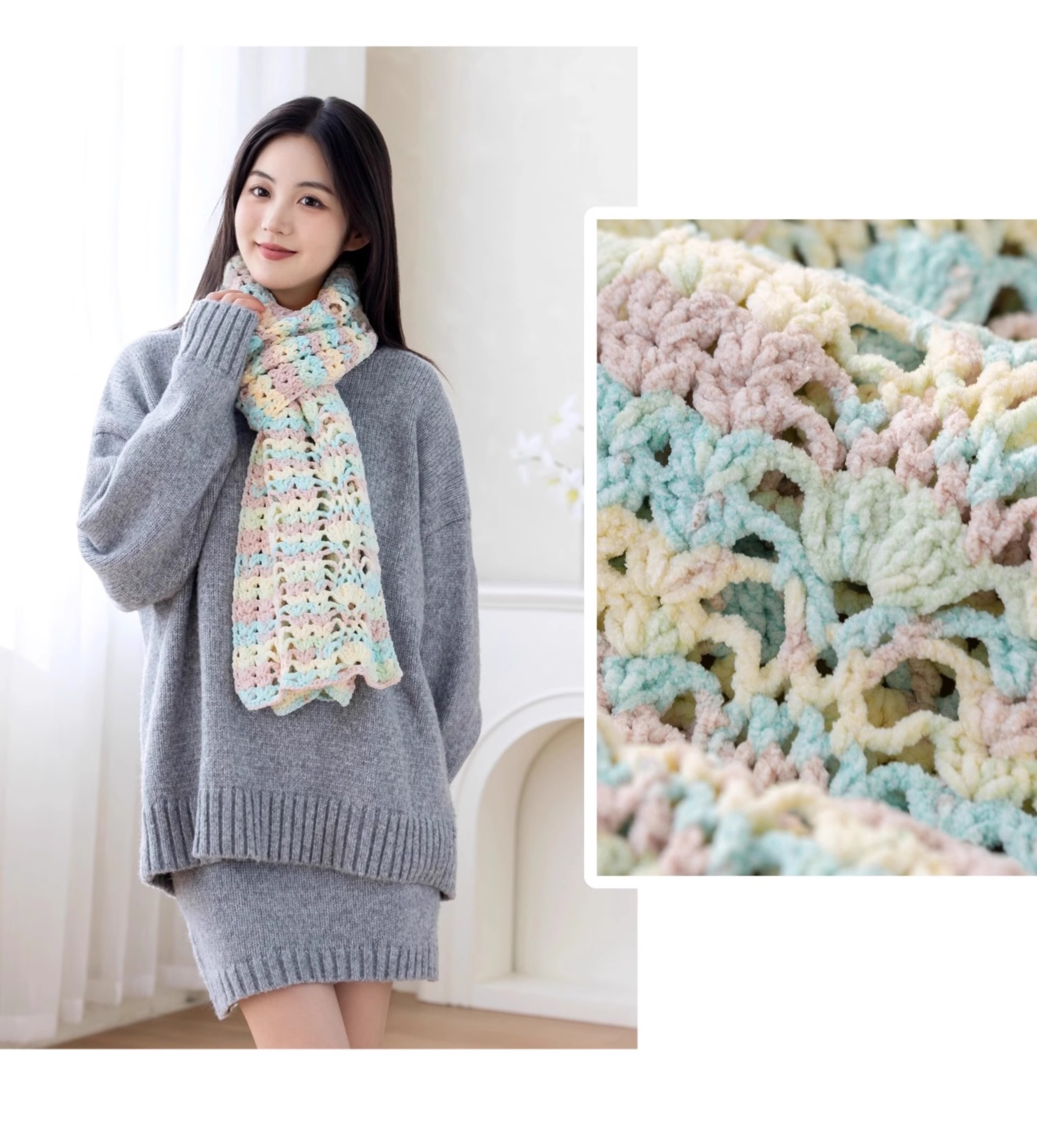 苏苏姐家软绵镂空围巾手工diy编织钩针毛线团自制围巾材料包冬