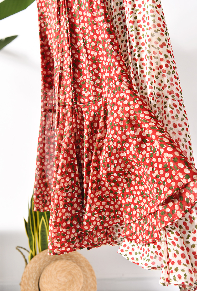 这件连衣裙造型感十足,荷叶袖结合不对称的下摆设计,