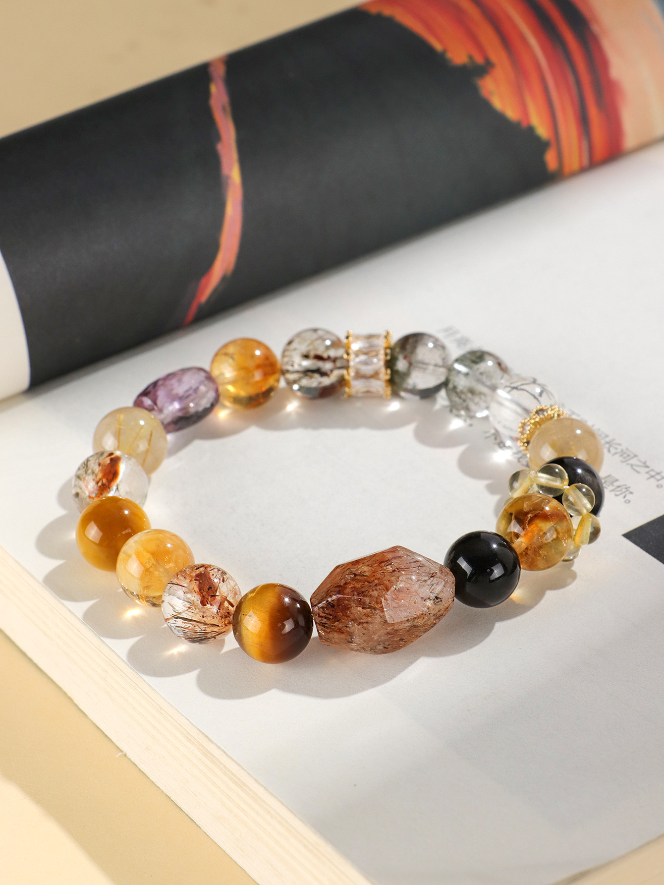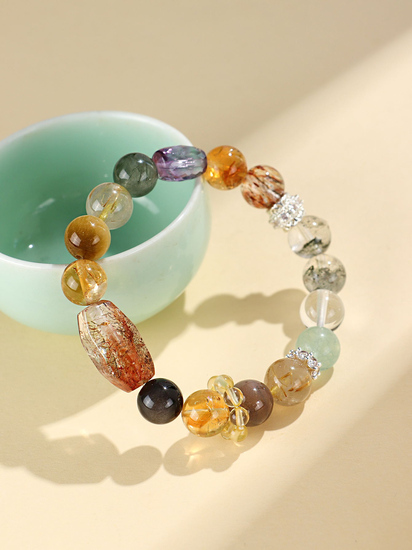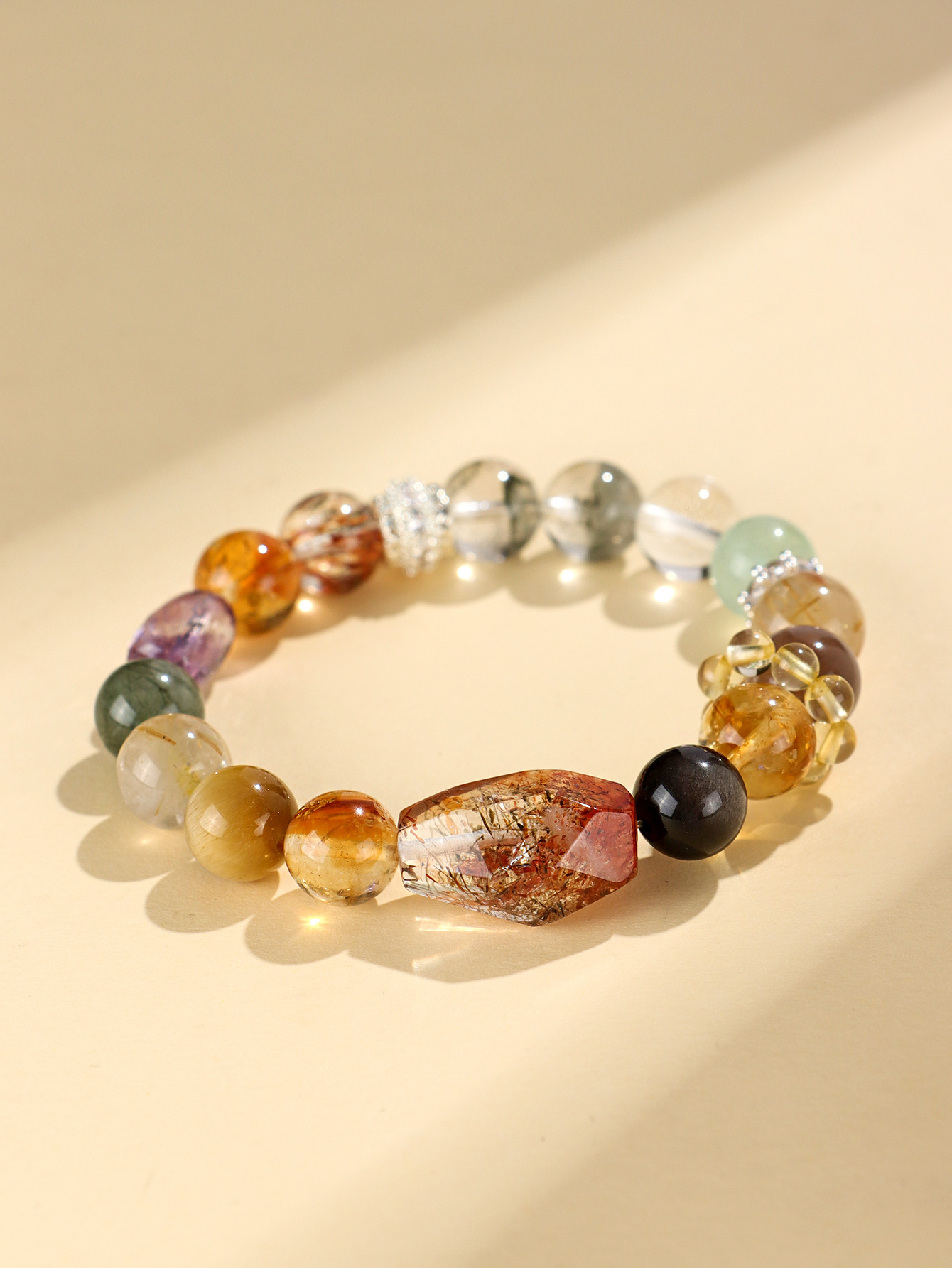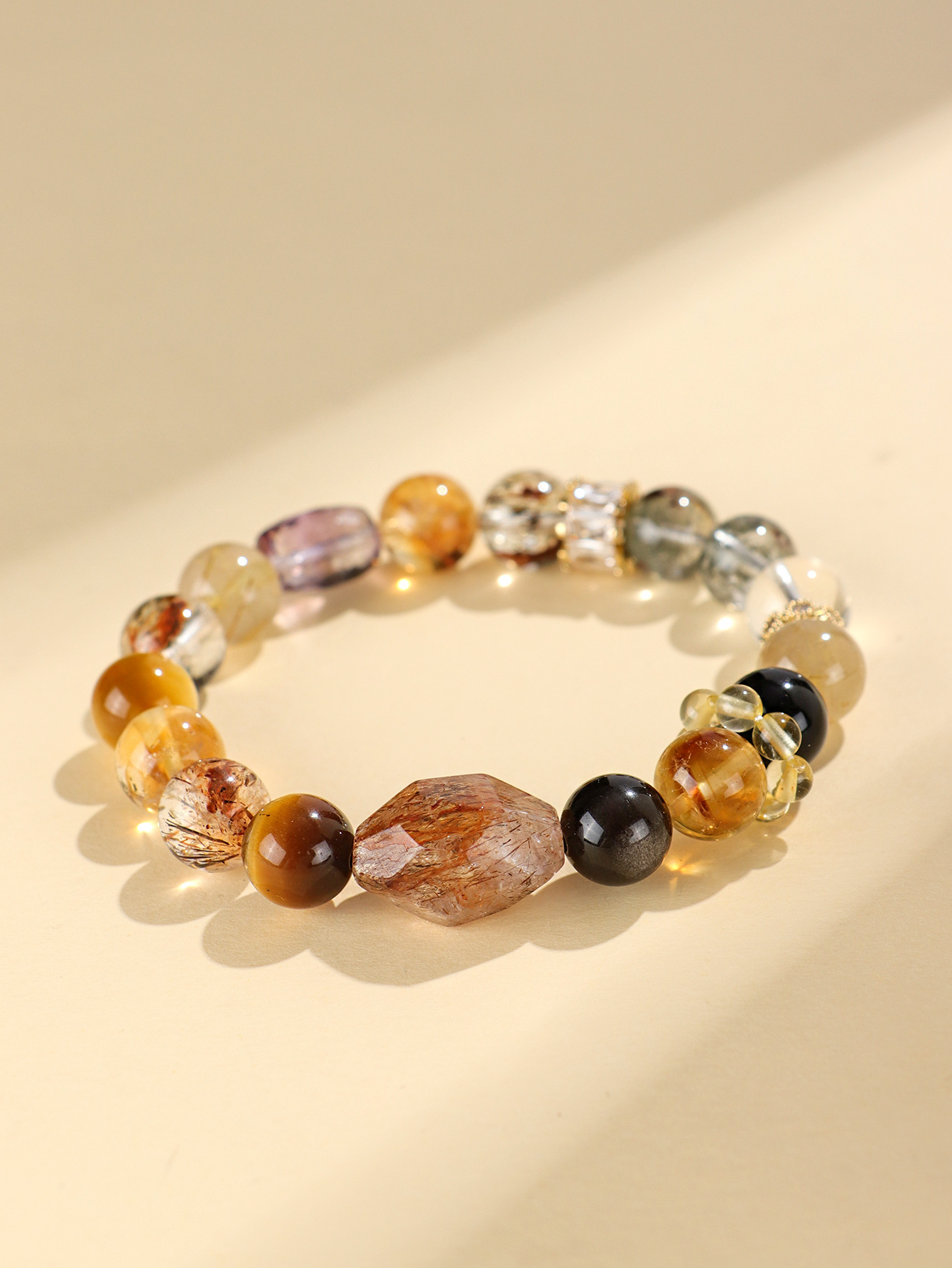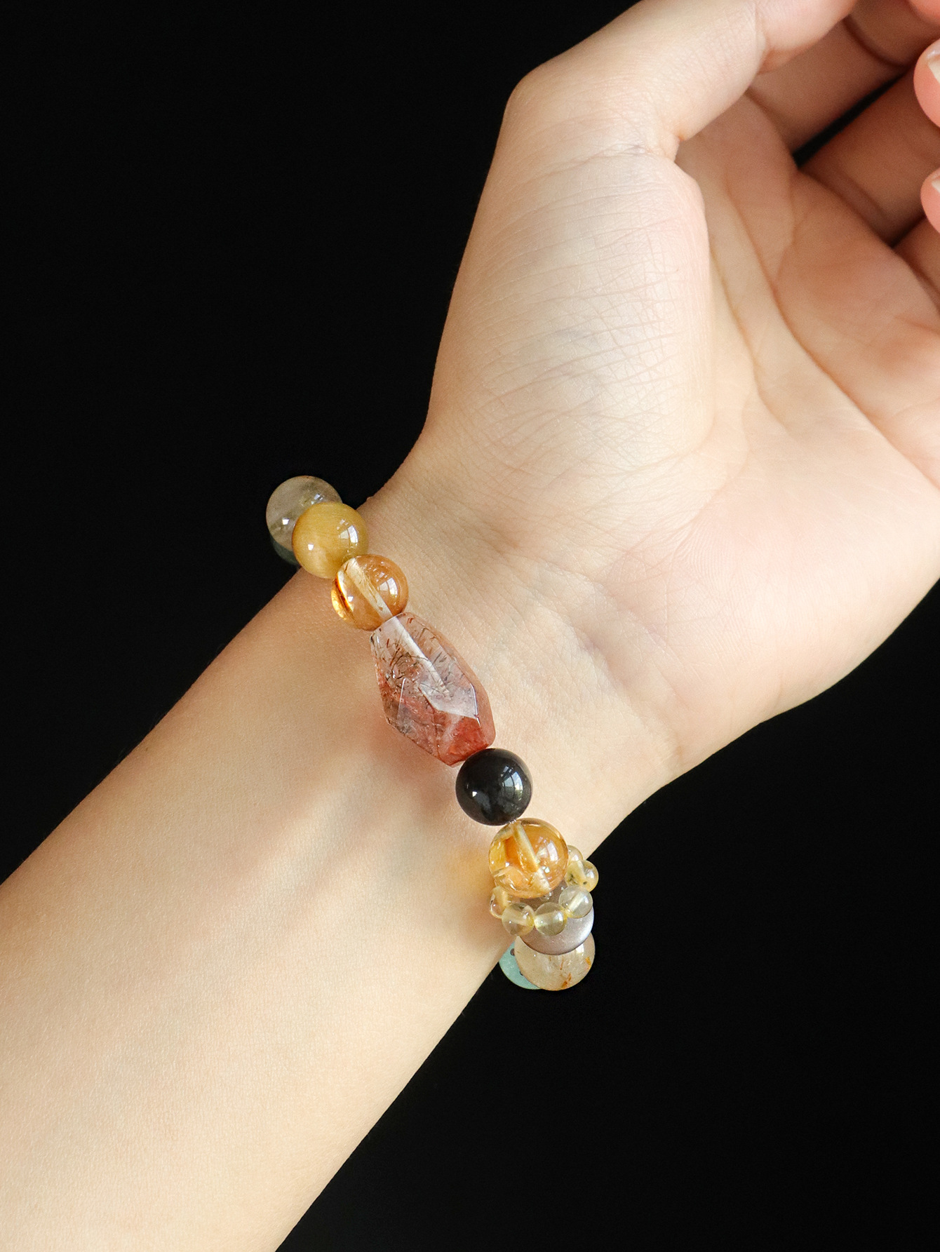 【事事顺遂❗多宝水晶串珠手链】天然精致多彩水晶,佩戴超显白显瘦,小众高级黑金超七绿幽灵手串首饰QQ