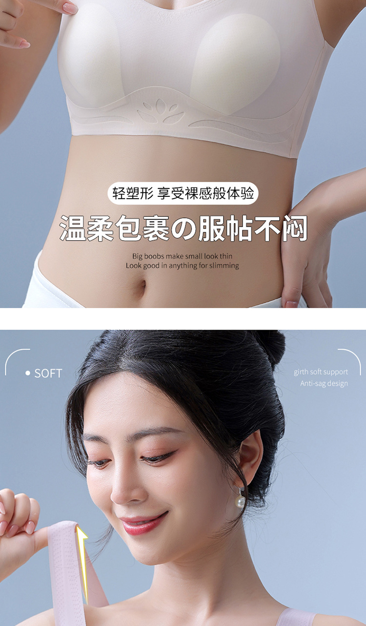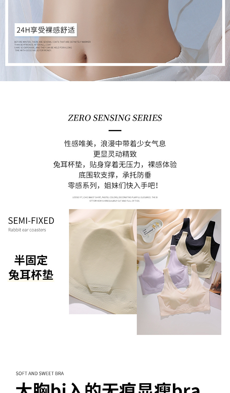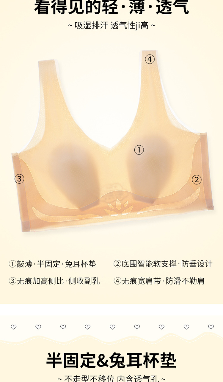 【大胸显小!轻薄无痕兔耳朵杯罩内衣】凉感透气胸罩,性感唯美,吸湿排汗,不走型不移位,内含透气孔,夏季薄款无痕内衣女背心式无钢圈文胸