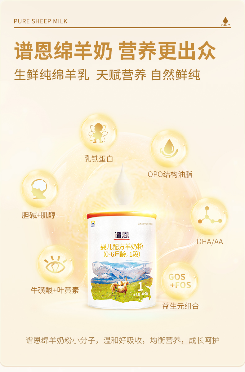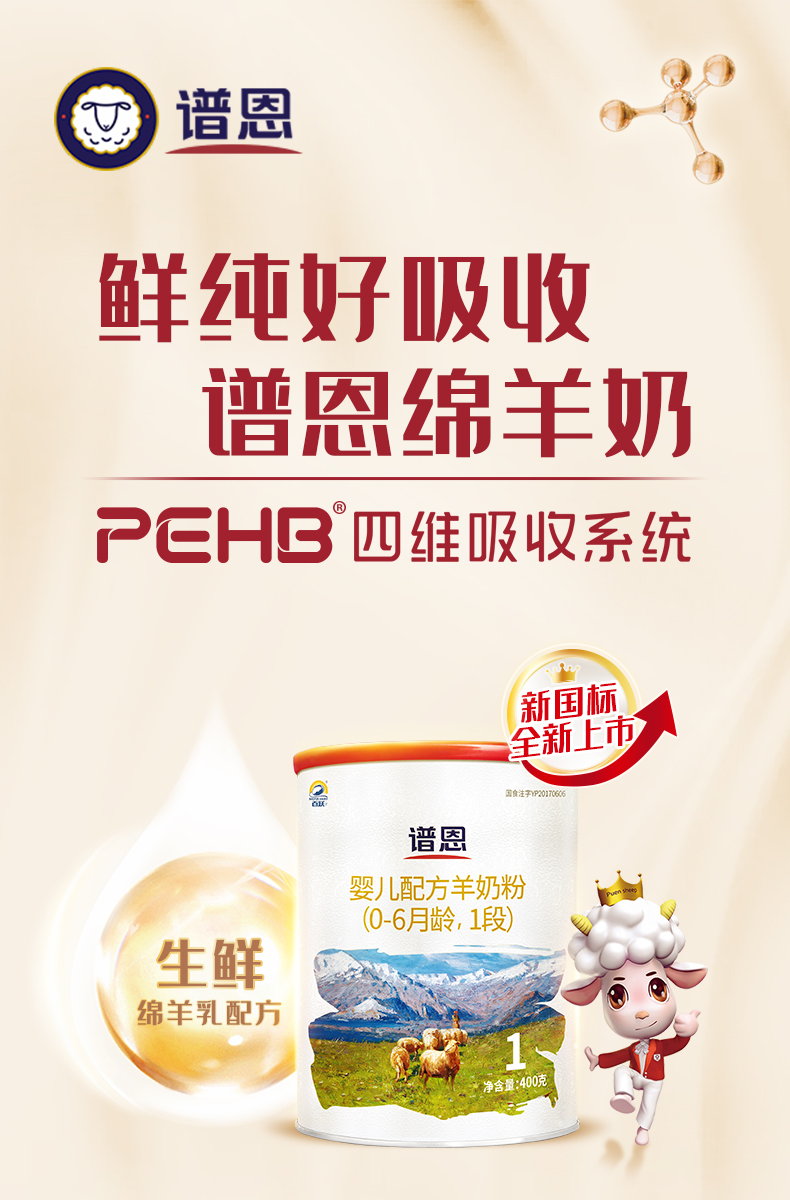 百跃谱恩婴儿配方羊乳粉1段400克适合(0-6个月)宝宝