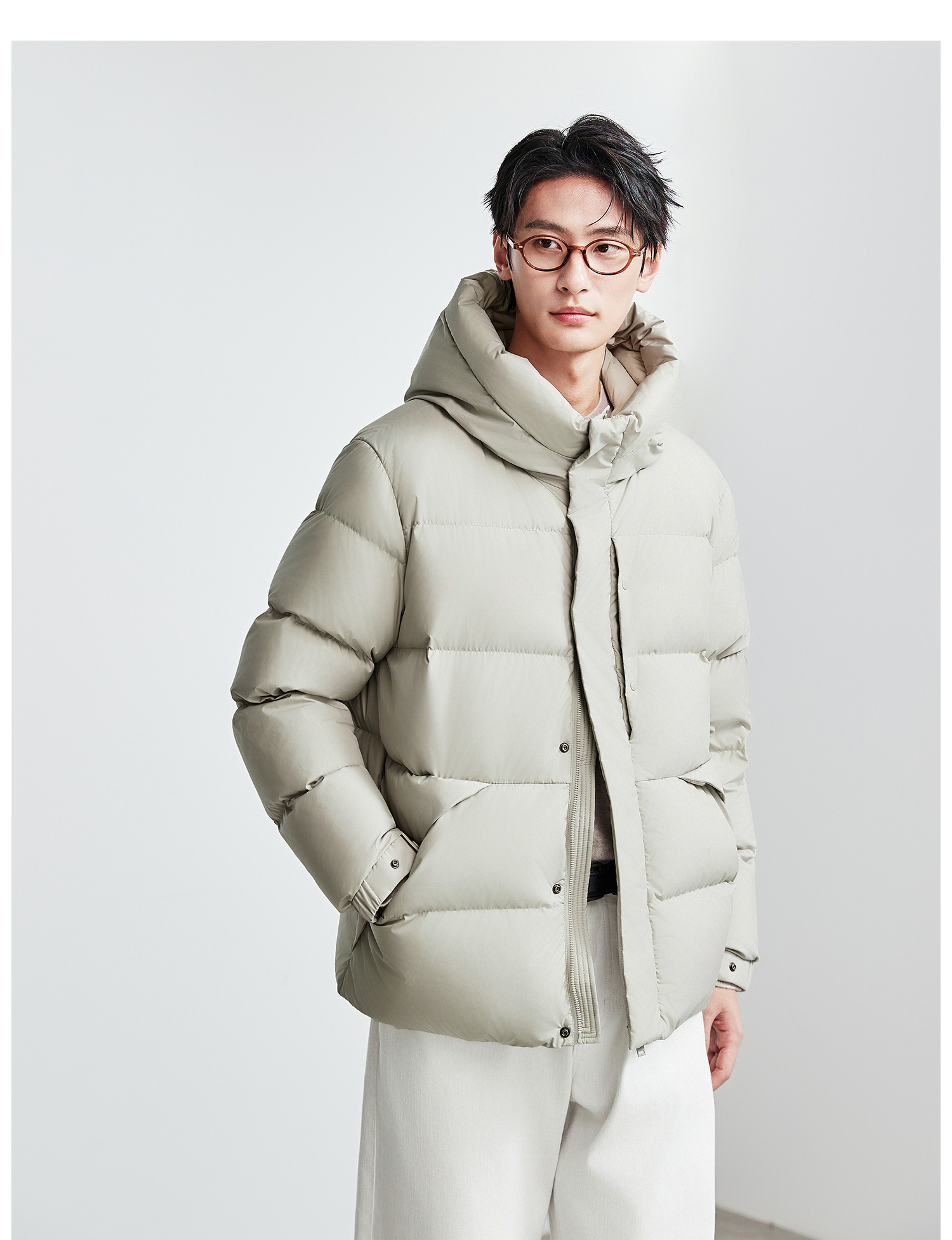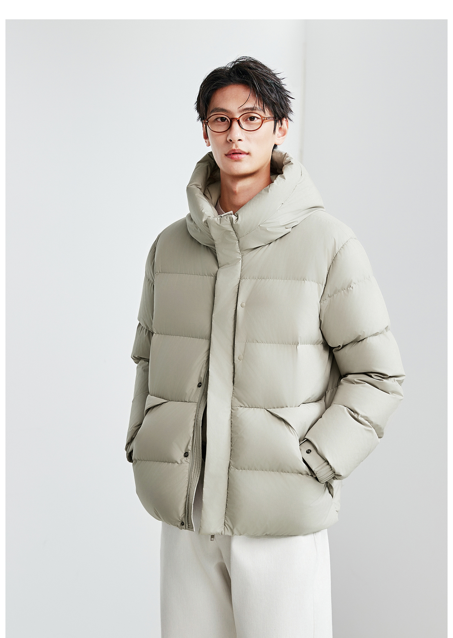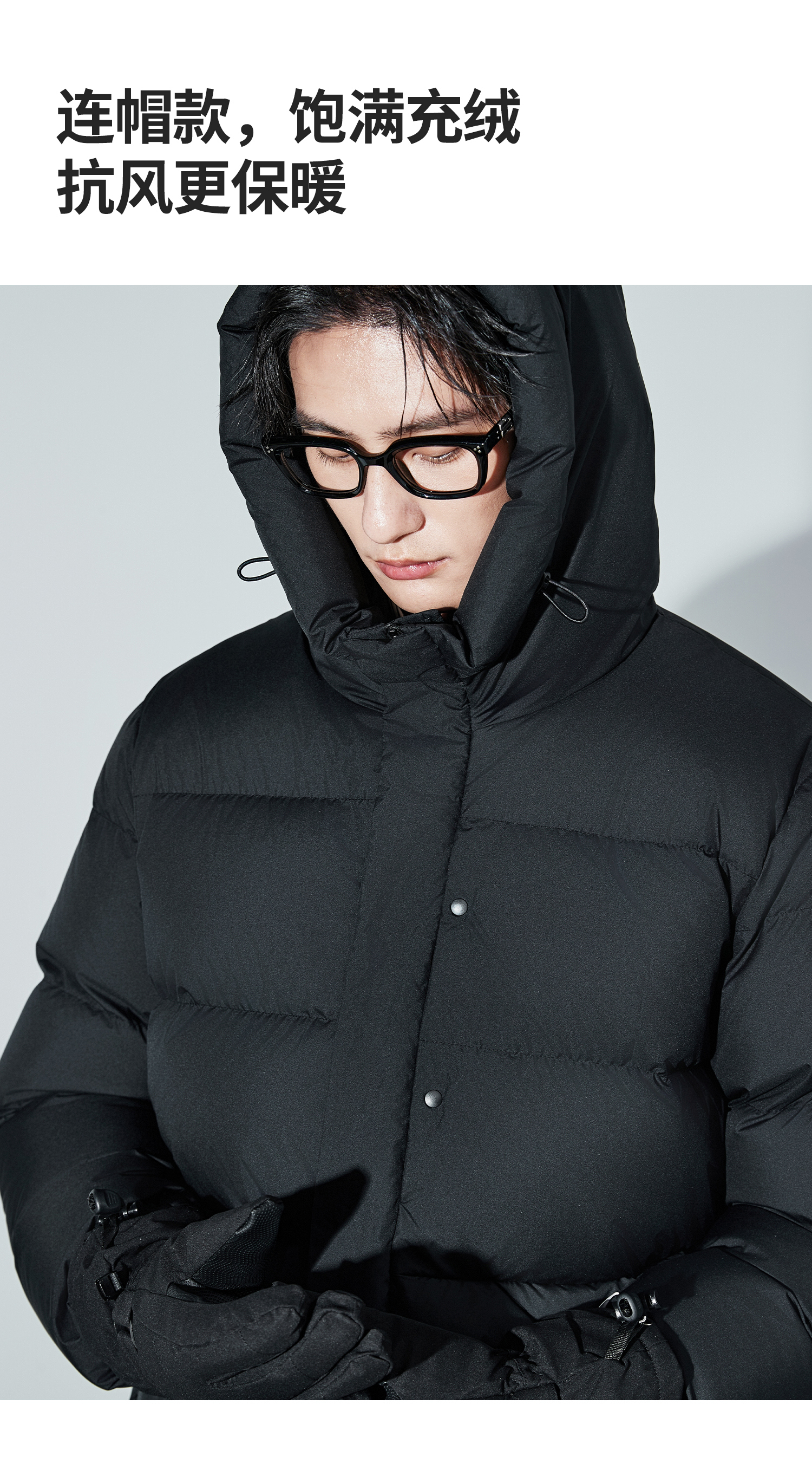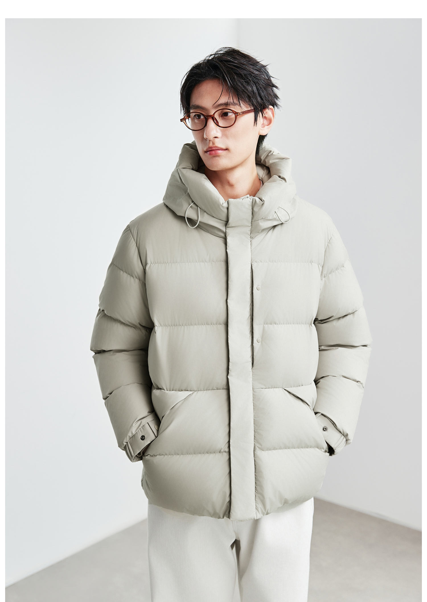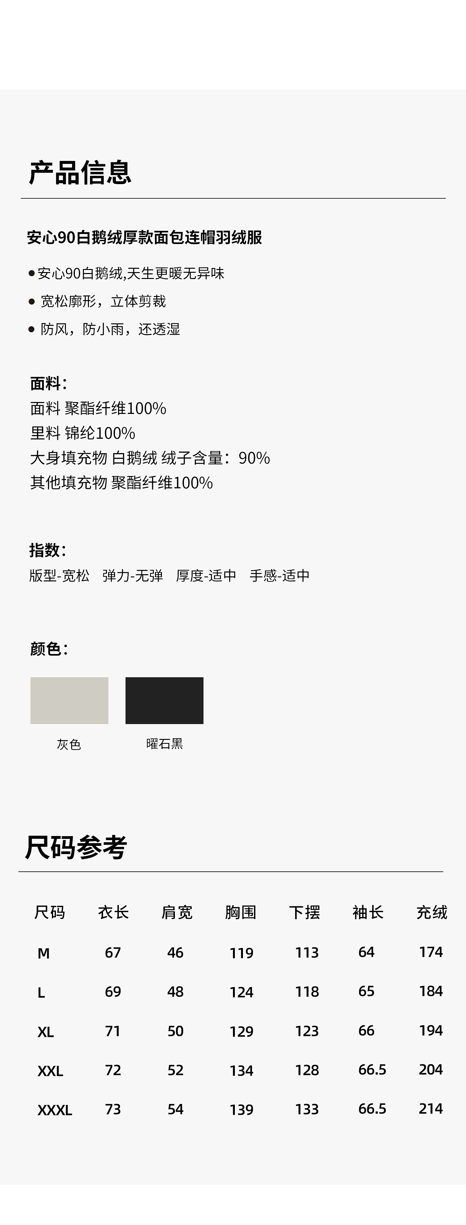 棉仓367815004-安心90白鹅绒厚款面包连帽羽绒服