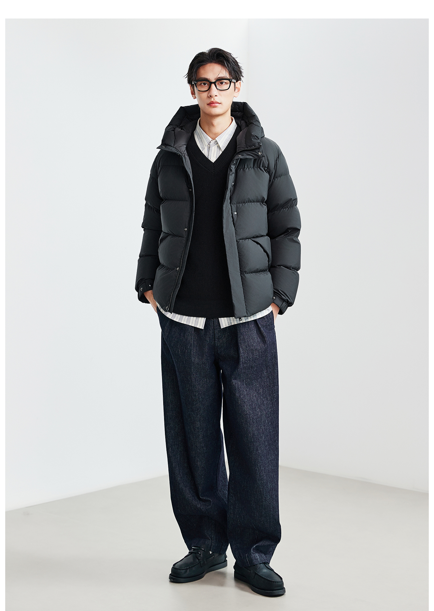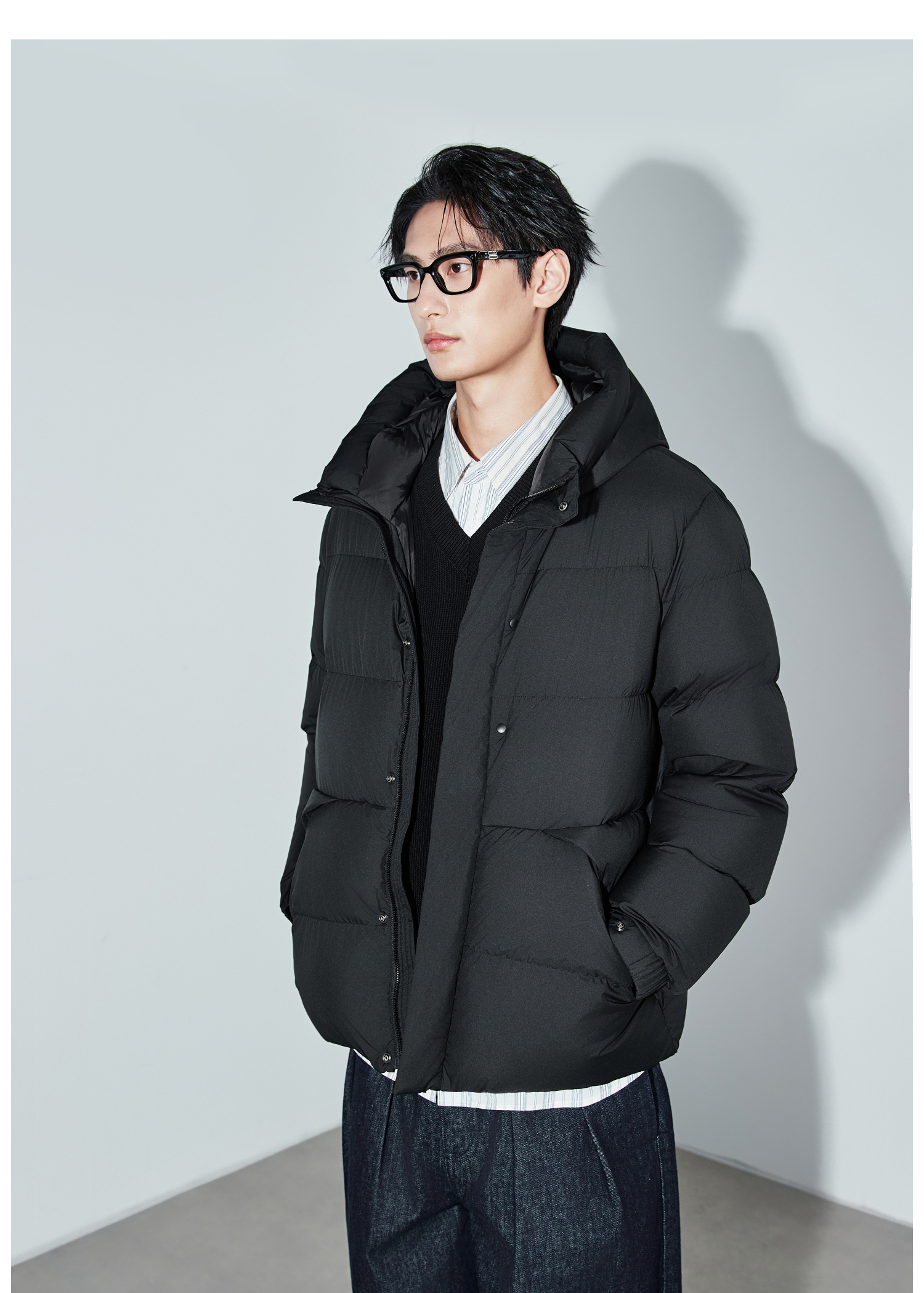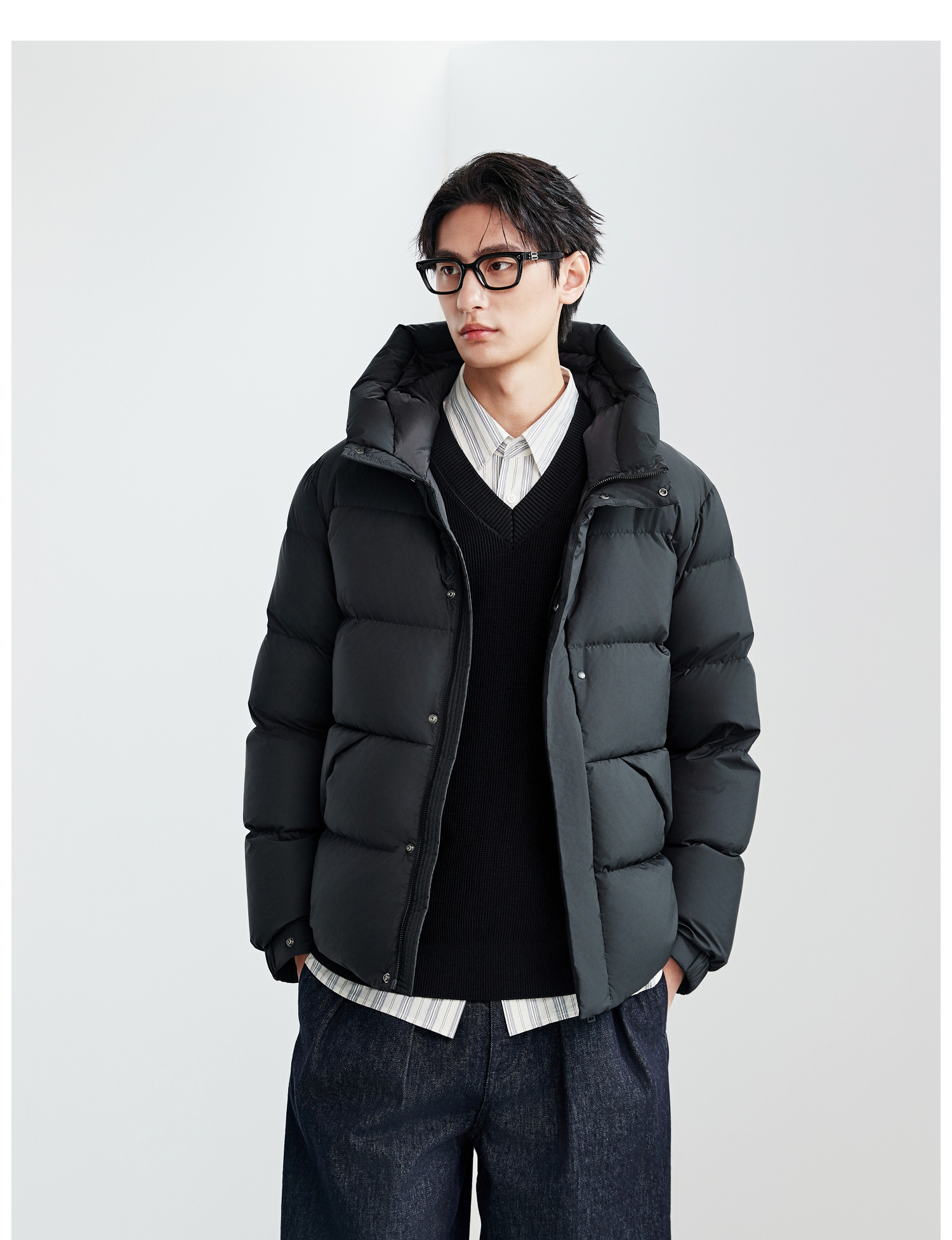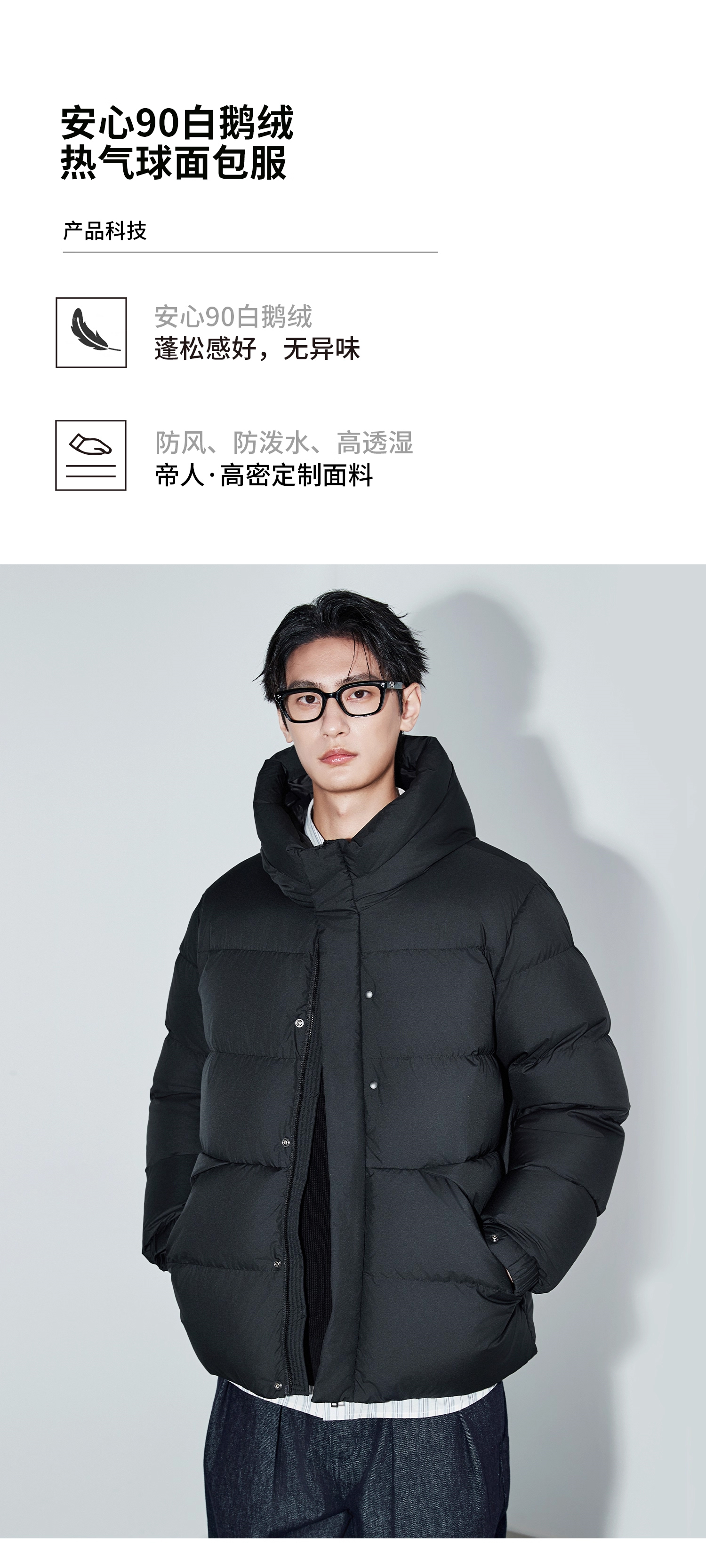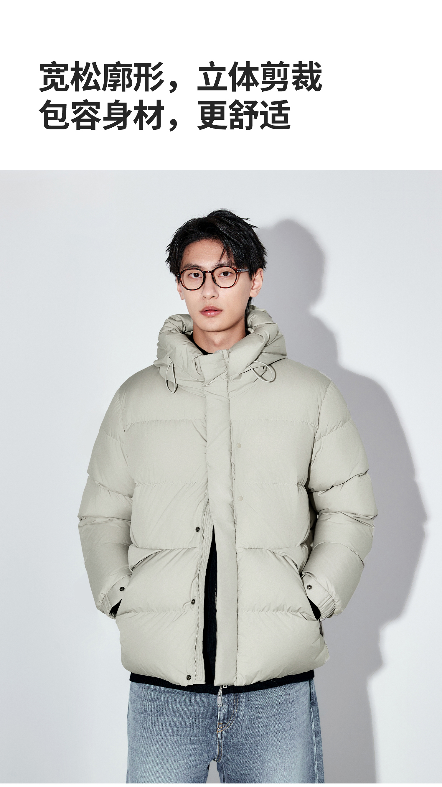 棉仓367815004-安心90白鹅绒厚款面包连帽羽绒服