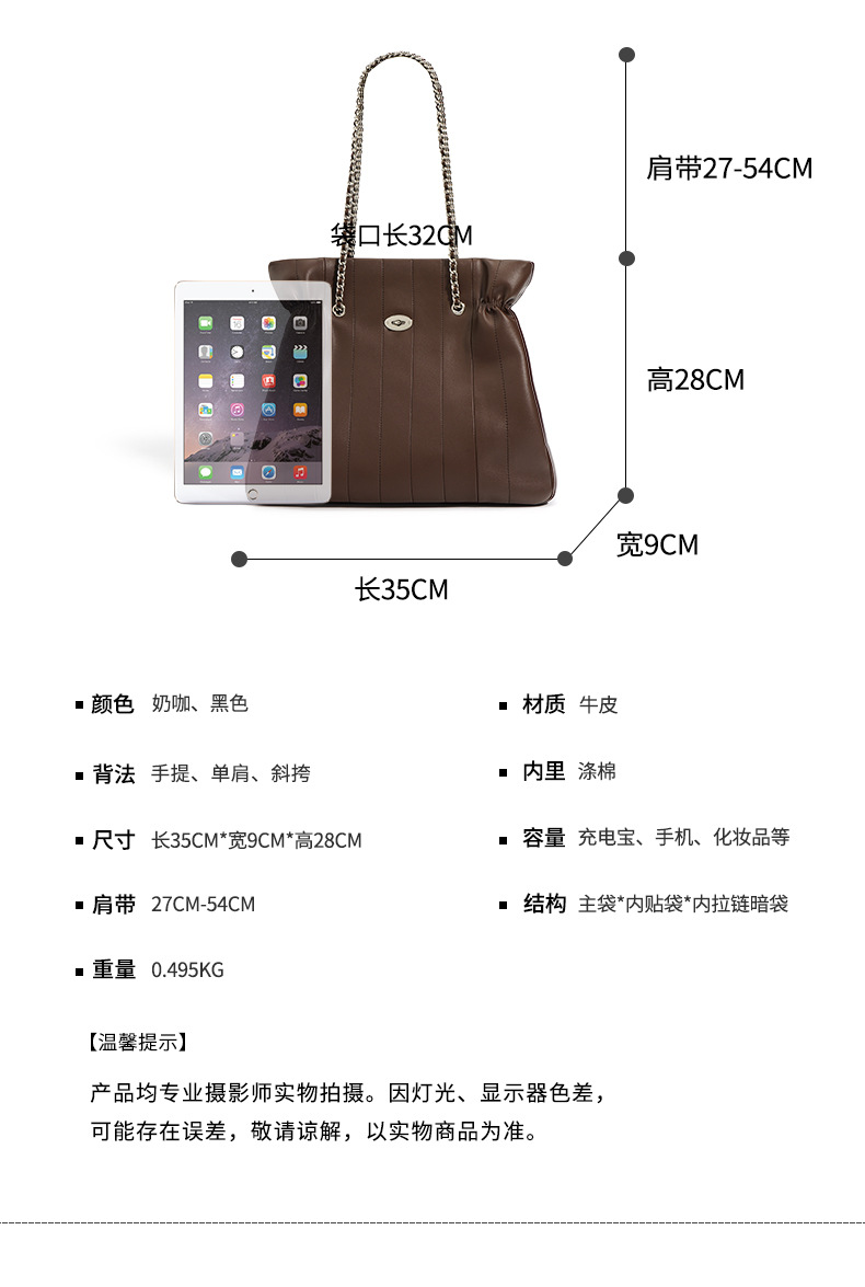 【预售3天】小众设计大容量托特包2025新款简约百搭单肩斜挎包时尚链条包M-7743A