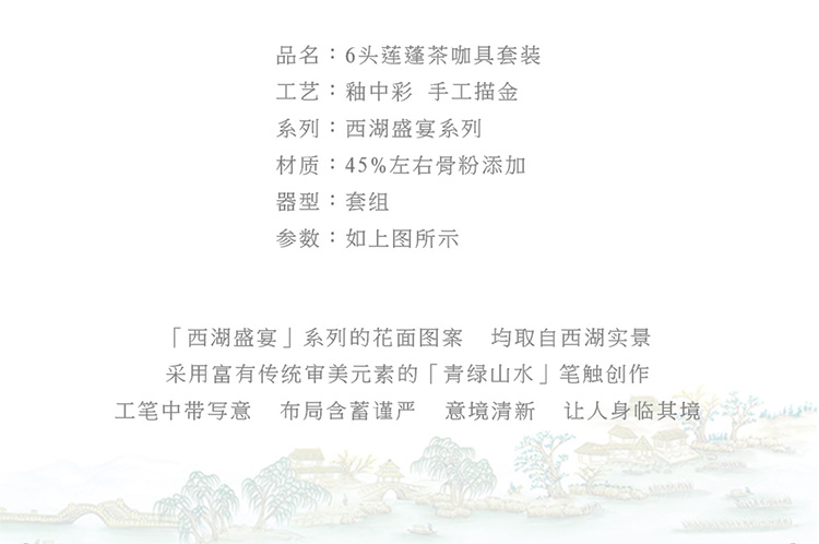 【春上新】10楼玛戈隆特西湖盛宴6头茶具-若水吊牌价1299元活动价1104元