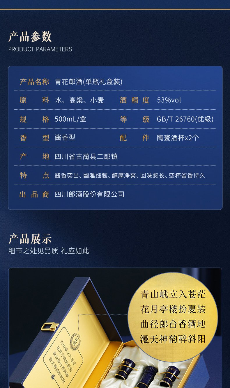 【礼盒装】郎酒青花郎 酱香型白酒500ml(53度)