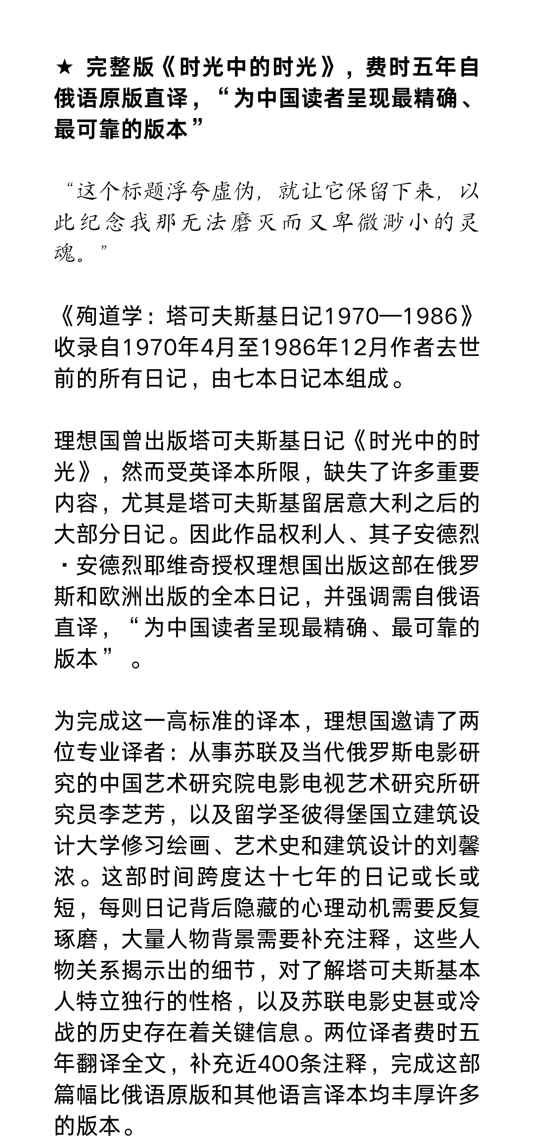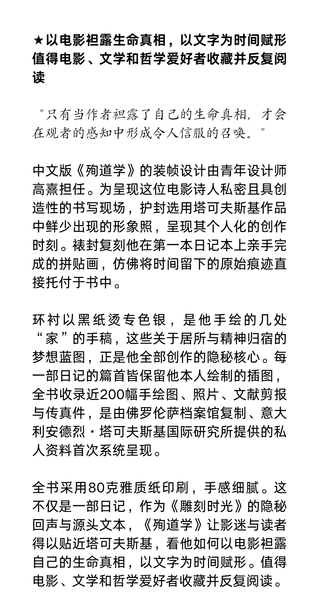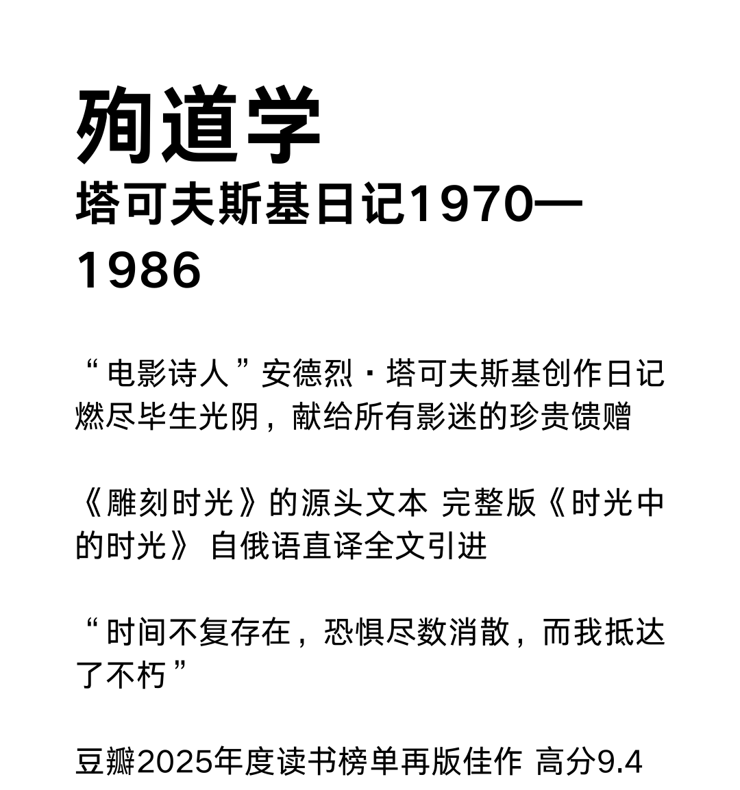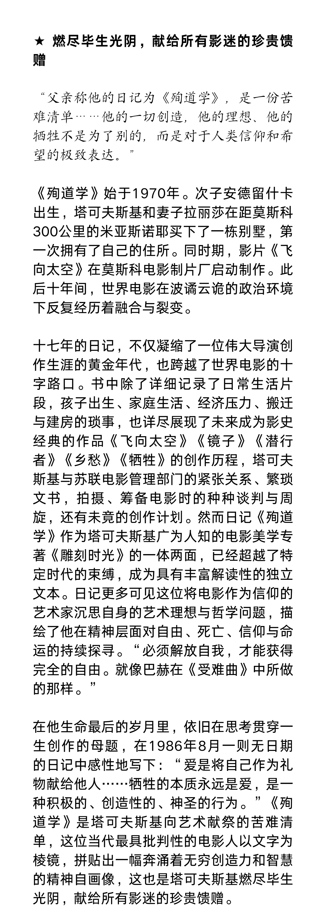 殉道学:塔可夫斯基日记1970—1986(注意!2月13日下午四点以后订单延迟到2月24日发货)