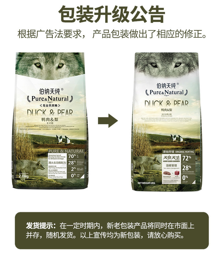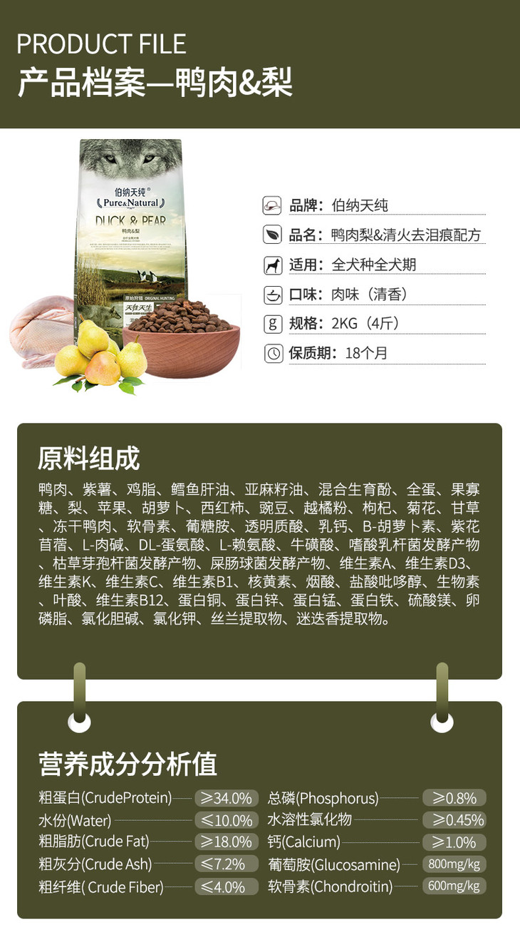 伯纳天纯鸭肉&梨全犬期2kg