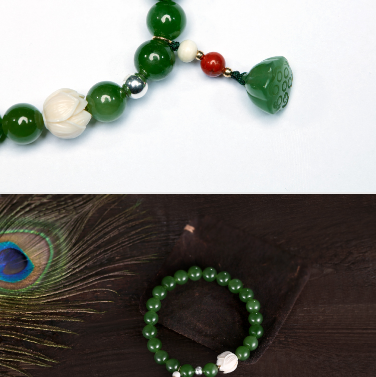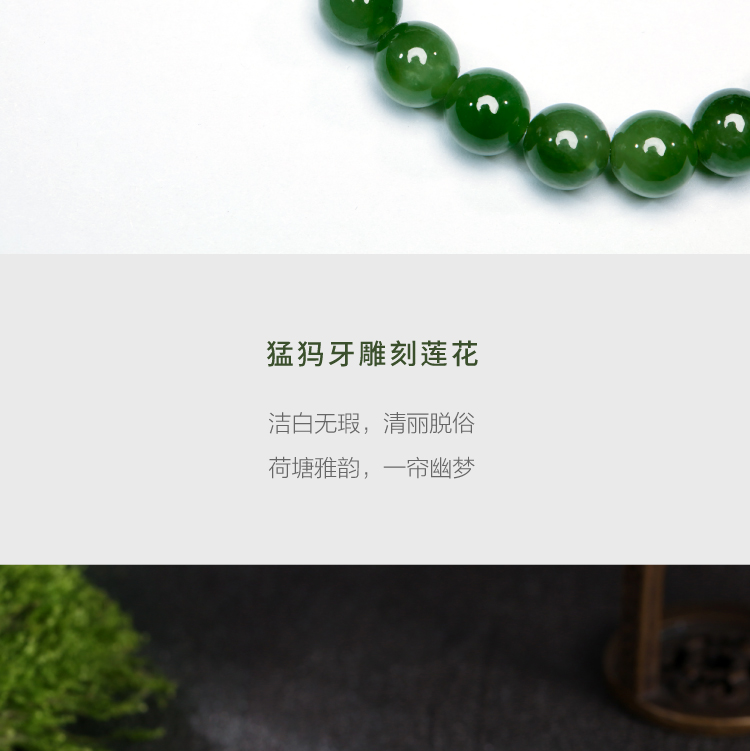 天然碧玉猛犸牙莲花8mm手串手镯高贵典雅轻奢礼物汉服搭配国风醍醐原创