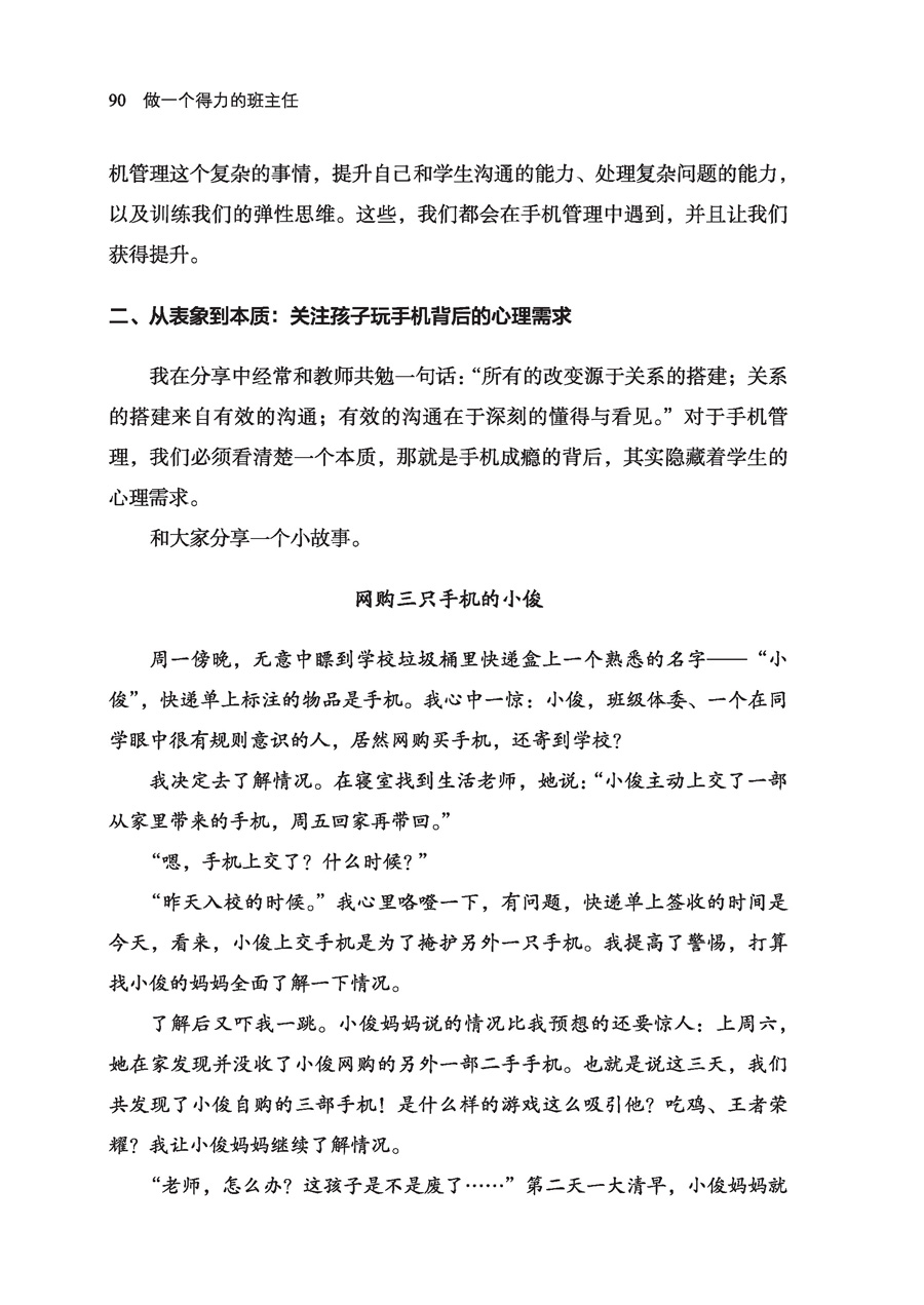 透过书中的文字,我们能感受到徐晓莉老师对班主任工作的热爱和浓浓的教育情怀,也能发现她对学生深切的关心和爱护,更为她精湛的管理方法和技巧所折服。