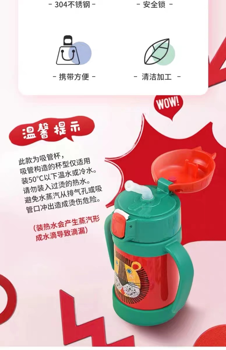 tiger虎牌幼儿童MCK-A28C吸管真空保冷水杯280ML小学生可爱便携