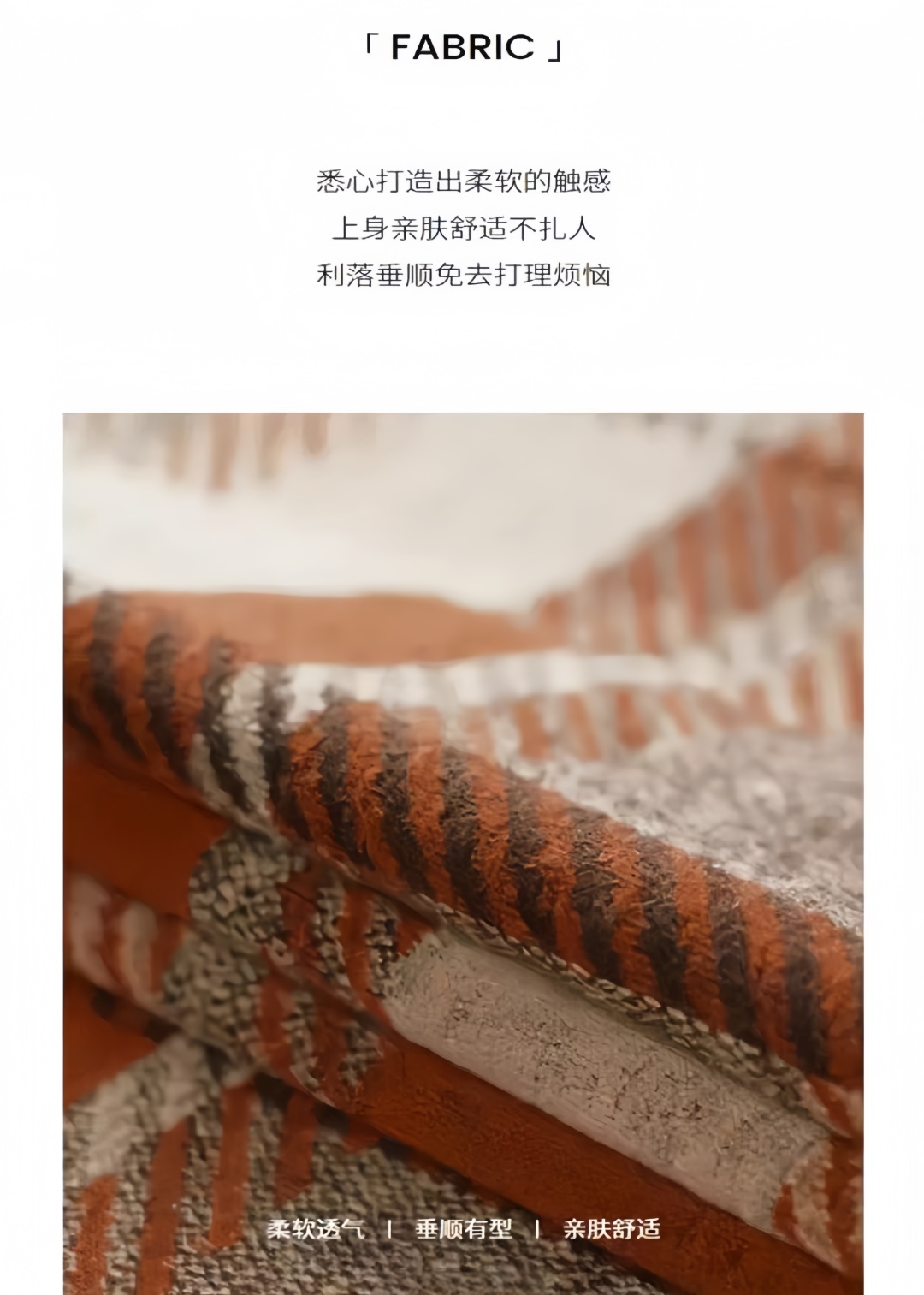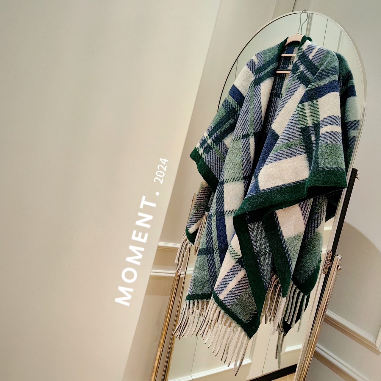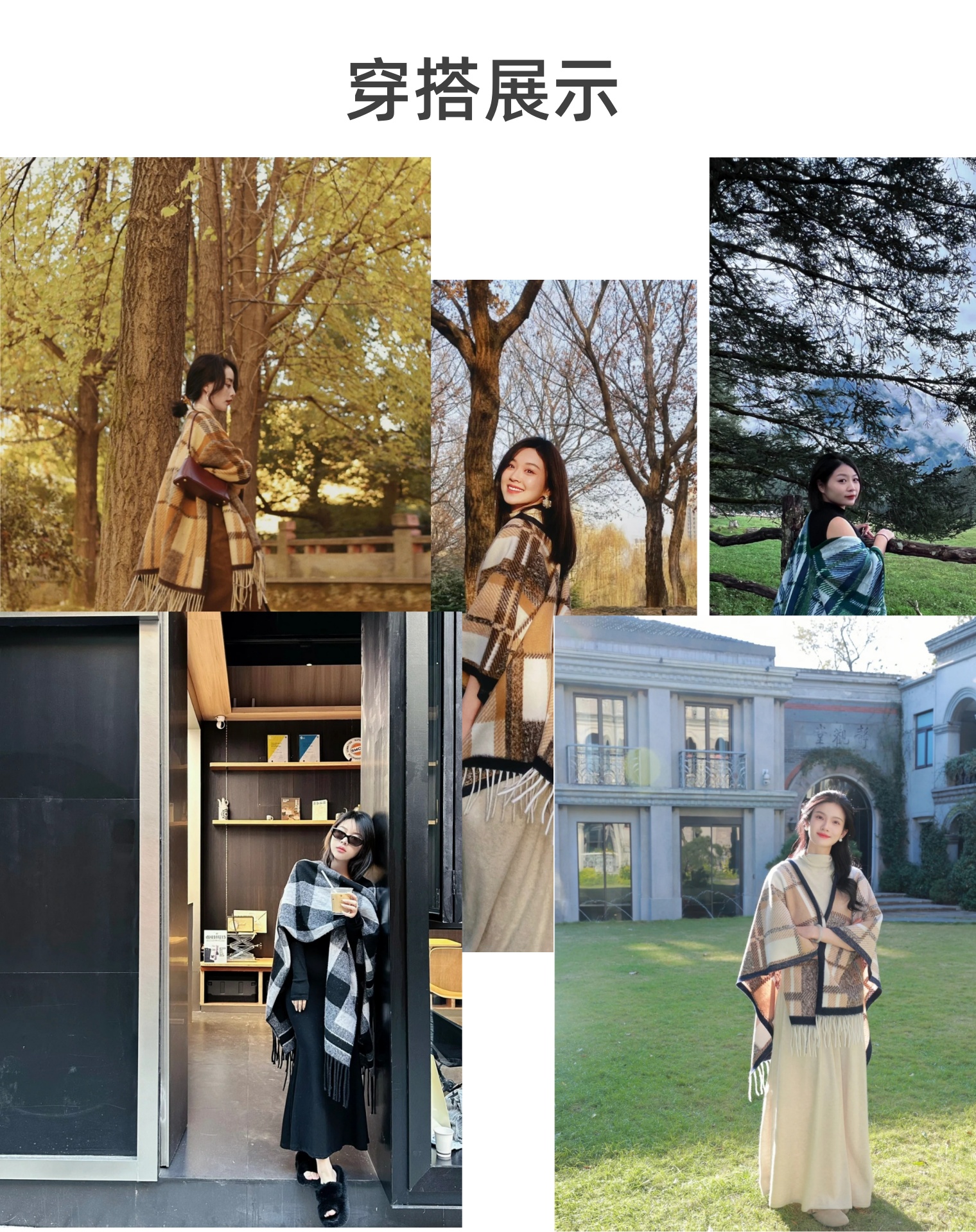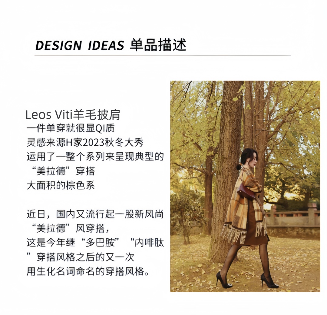 这条披肩,采用一线大牌都在用的羊毛混纺材质,同时使用优秀的羊毛处理技术,在保持温暖柔软的基础上,又轻便易打理,格纹工整清晰,紧密有序,配色也很好看!披肩也并非传统的一片式设计,而是巧妙地采用了分叉型剪裁,从脖颈处自然分叉至流苏边缘,完美贴合身体曲线,不仅增强了实用性,更在视觉上呈现出层次分明的美感。
