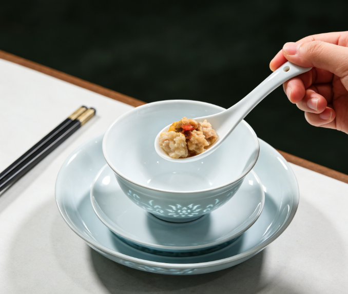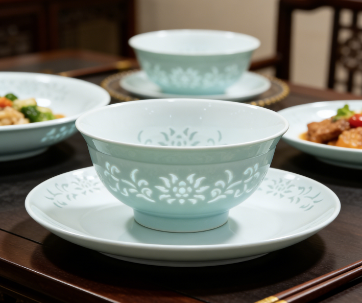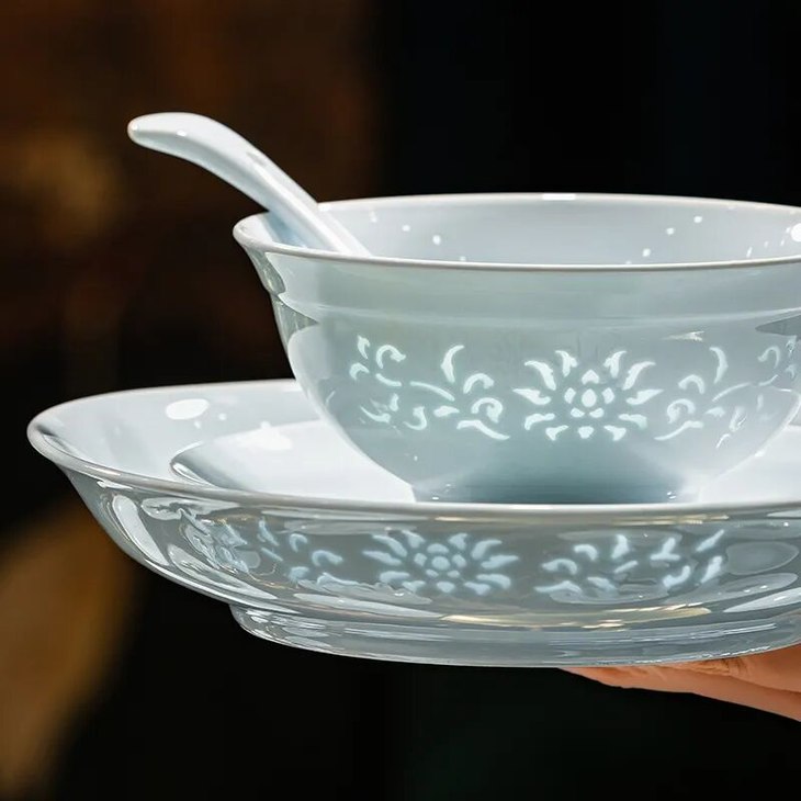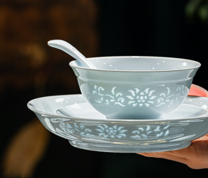 百年来,玲珑瓷作为景德镇四大名瓷之一,与青花、粉彩、颜色釉齐名。那份独有的、若隐若现的朦胧美,用在寻常餐具里就非常高级。