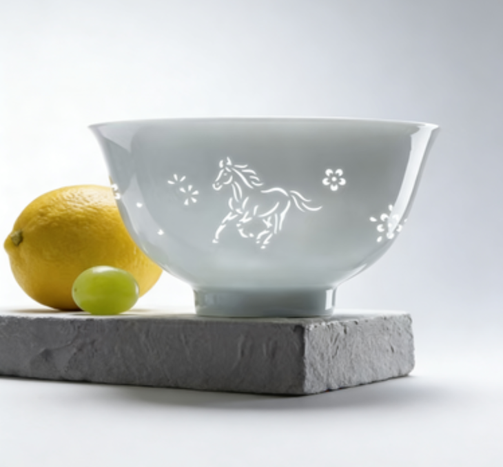 我们带来的玲珑釉餐具,与中国十二生肖传统民俗文化相结合,每一只碗不仅镂雕出通透灵动的生肖动物。