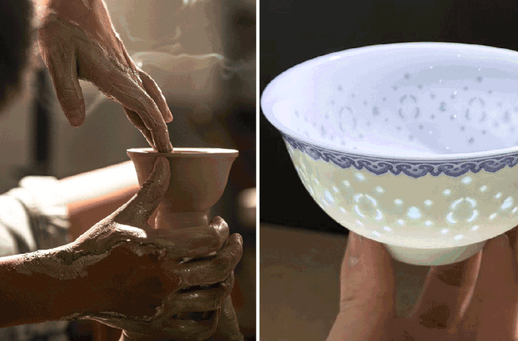 出窑后,对光一照,竟莹润透光,启发了明代工匠烧出晶莹剔透的玲珑瓷。
