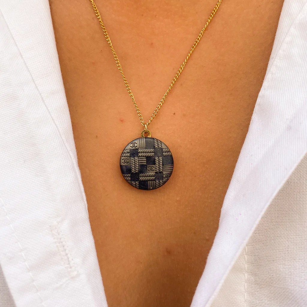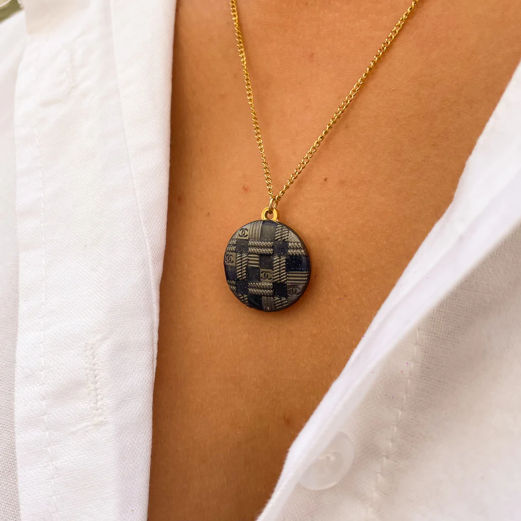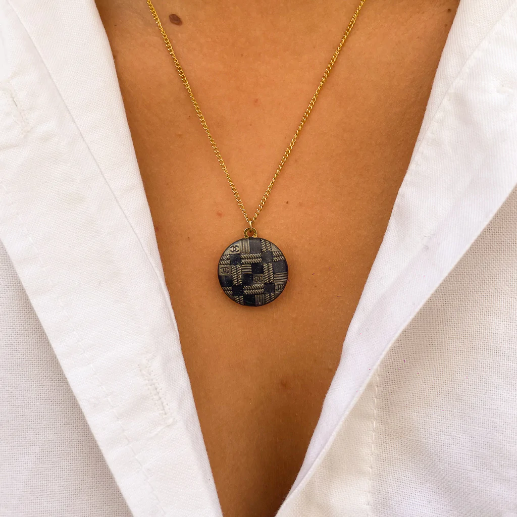 订购6周到|Gigi Paris-Chanel-蓝格纹 中古纽扣 项链[法国设计师]
