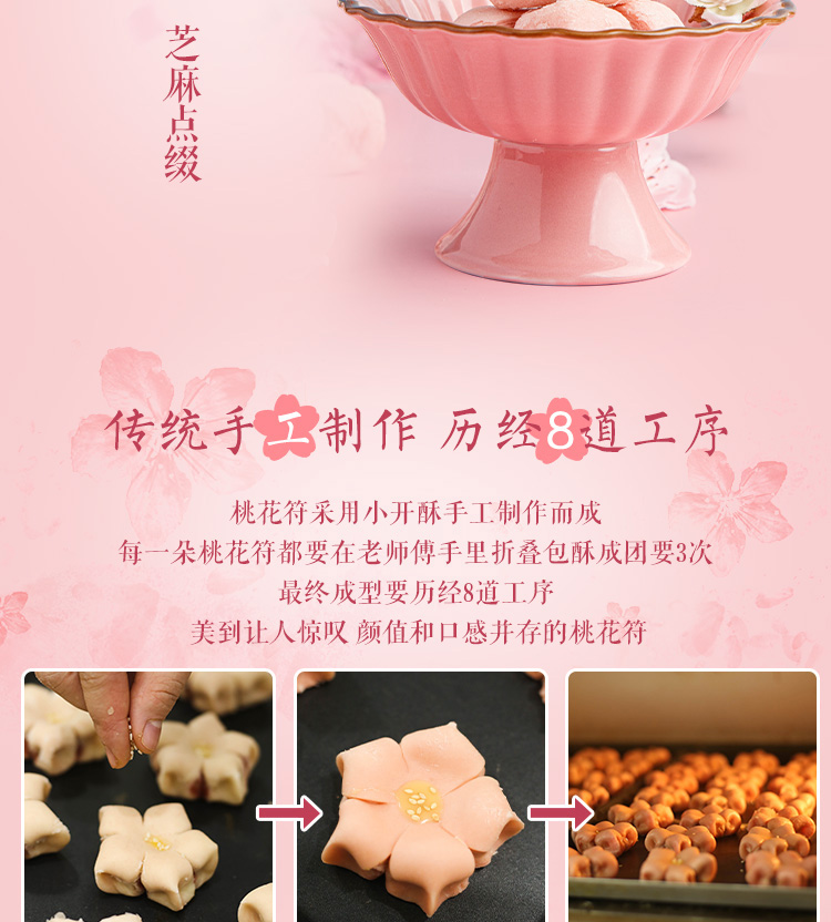祥禾饽饽铺桃花酥樱花零食糕点点心玫瑰鲜花饼婚礼糕点天津特产