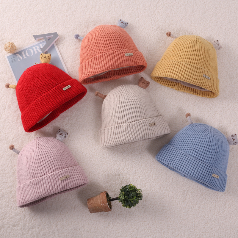 【舒享无感佩戴】新款宝宝秋冬季可爱超萌婴儿帽毛线帽保暖套头帽爱心针织帽子