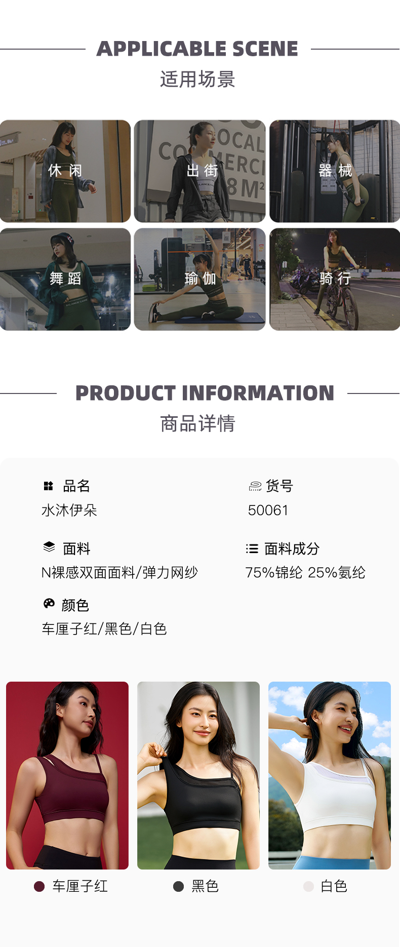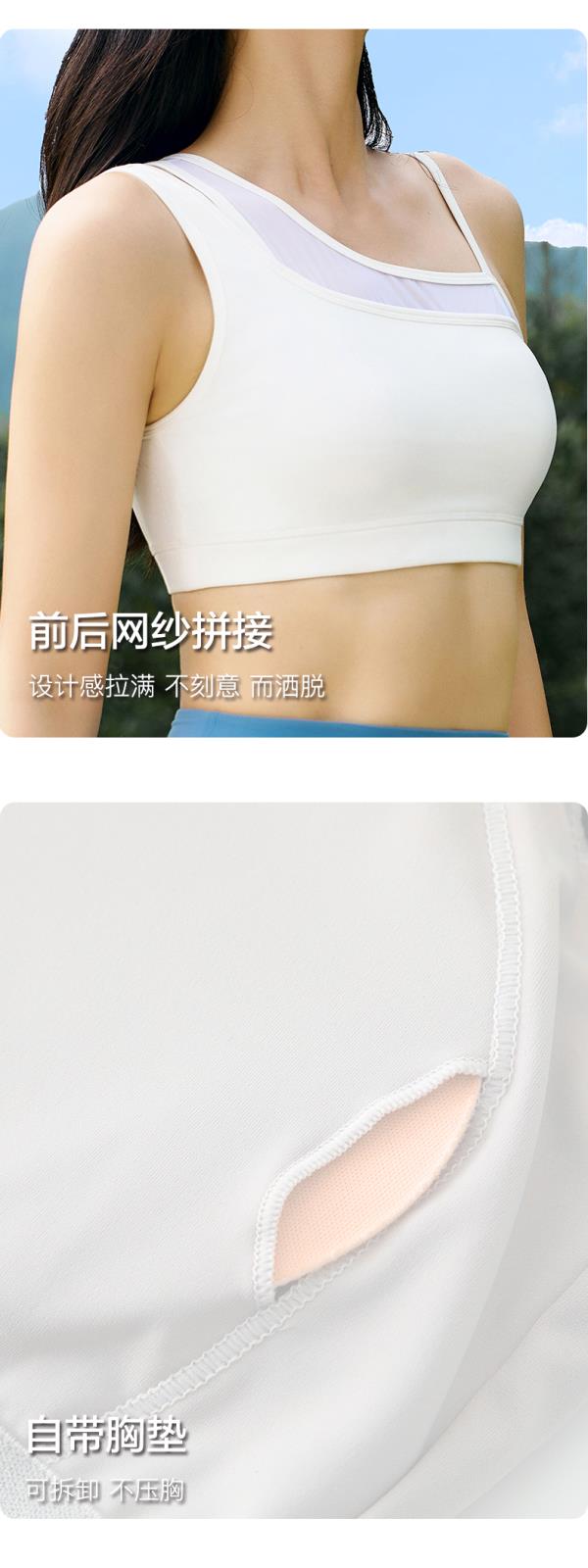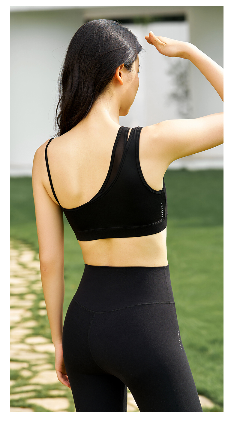 SMOEDOD/水沐伊朵瑜伽女文胸双肩带不对称设计网纱拼接时尚50061