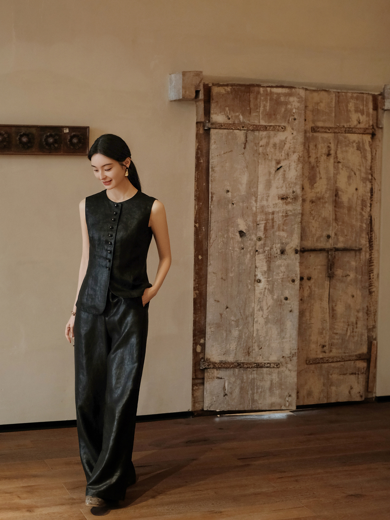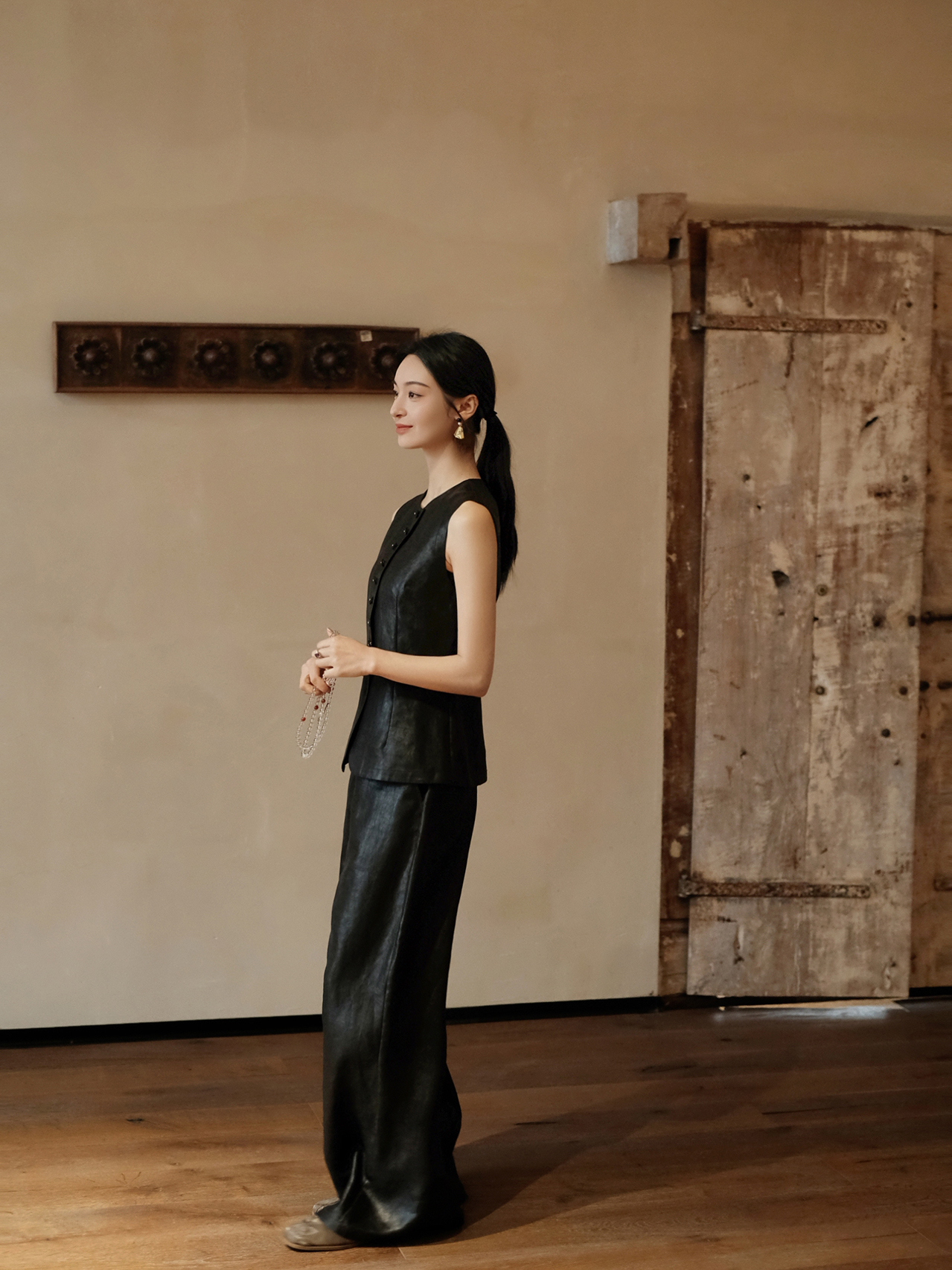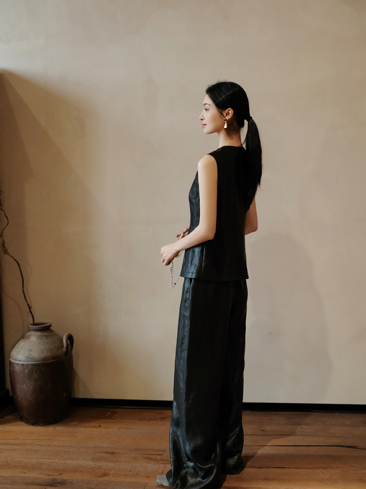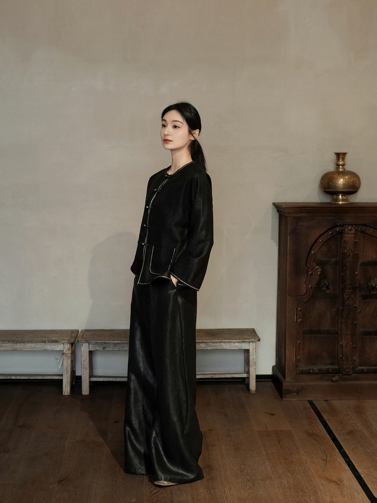 盛唐婧 | 本色行云重磅真丝香云纱直筒裤