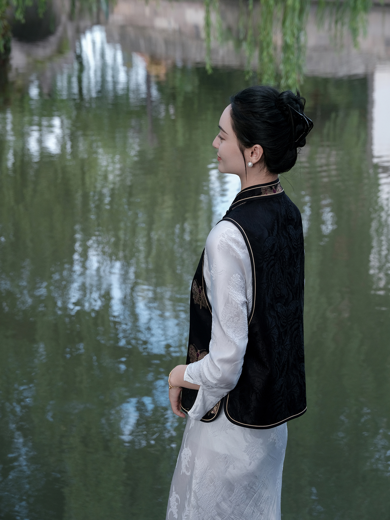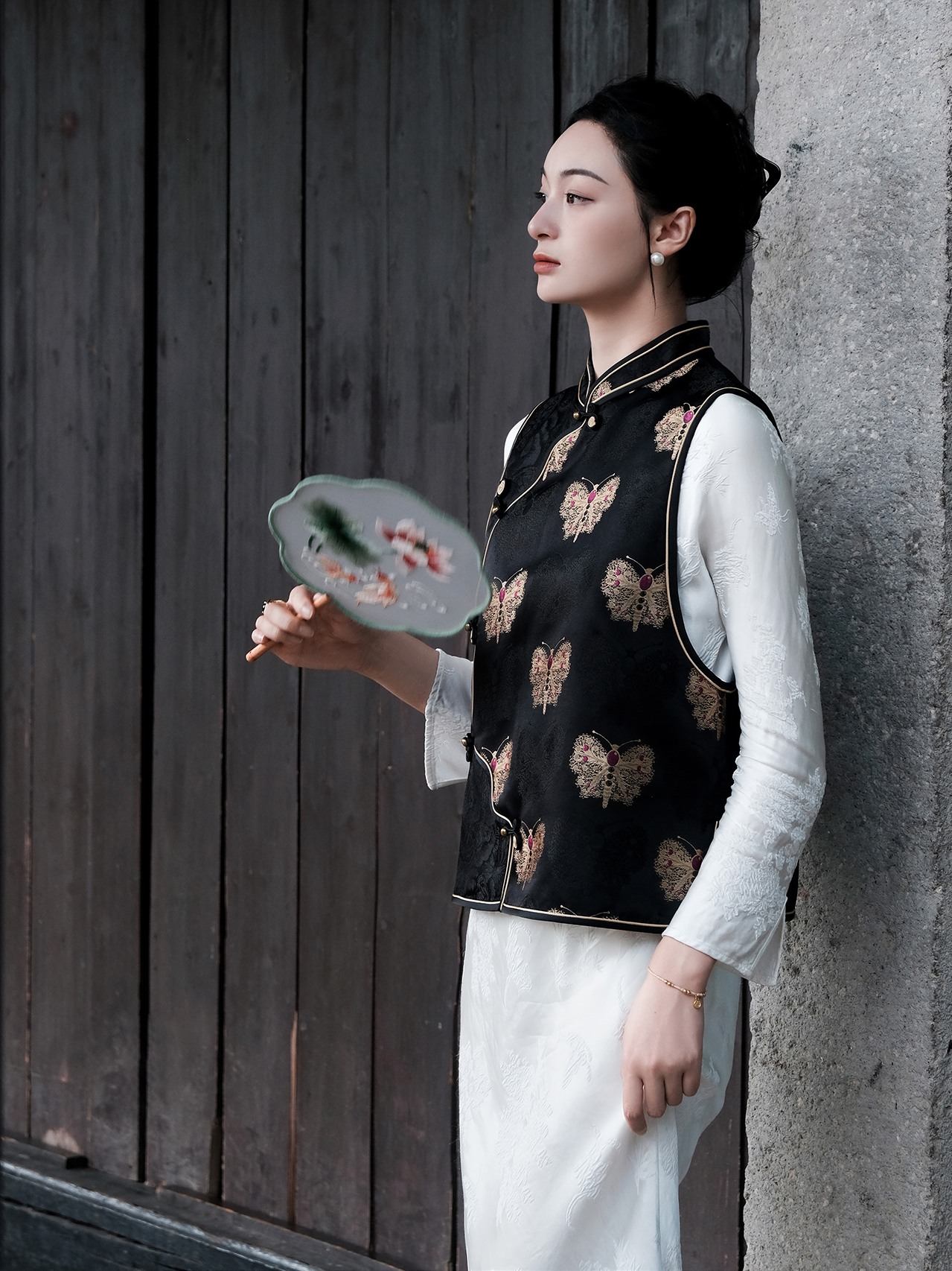 盛唐婧 |中式国风黑金蝴蝶花瓣襟马甲