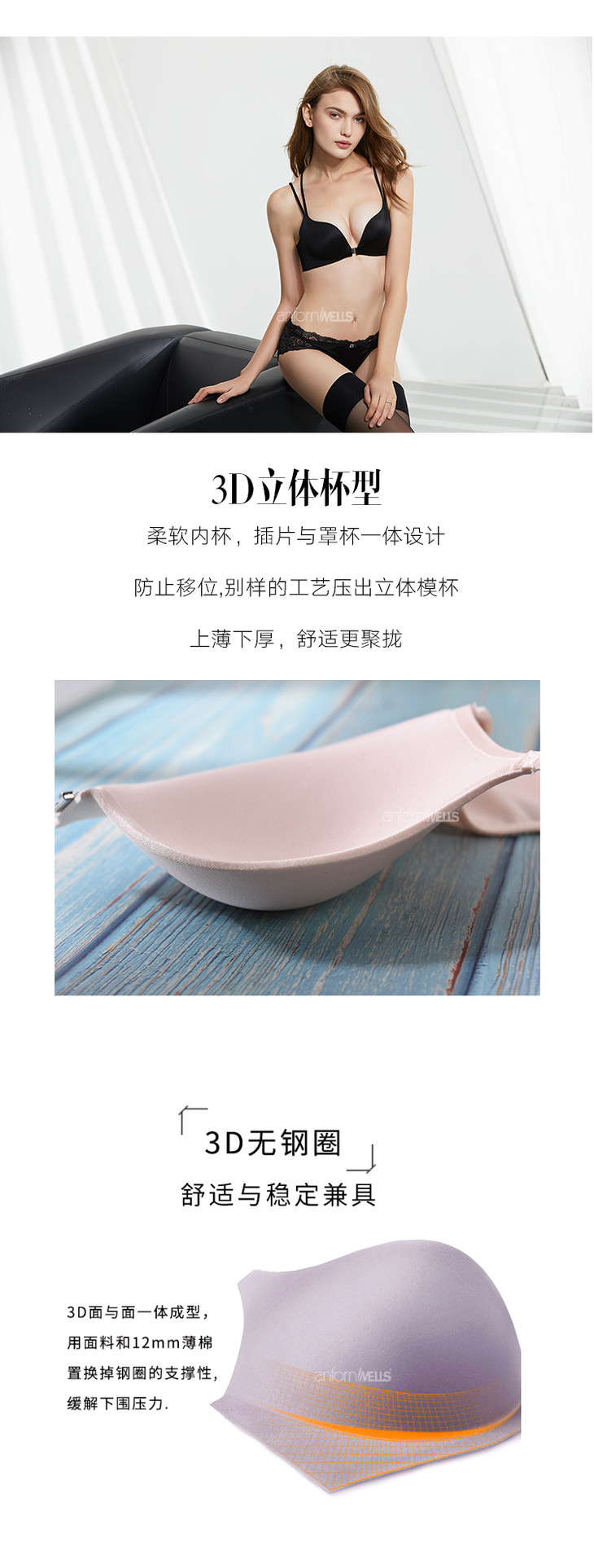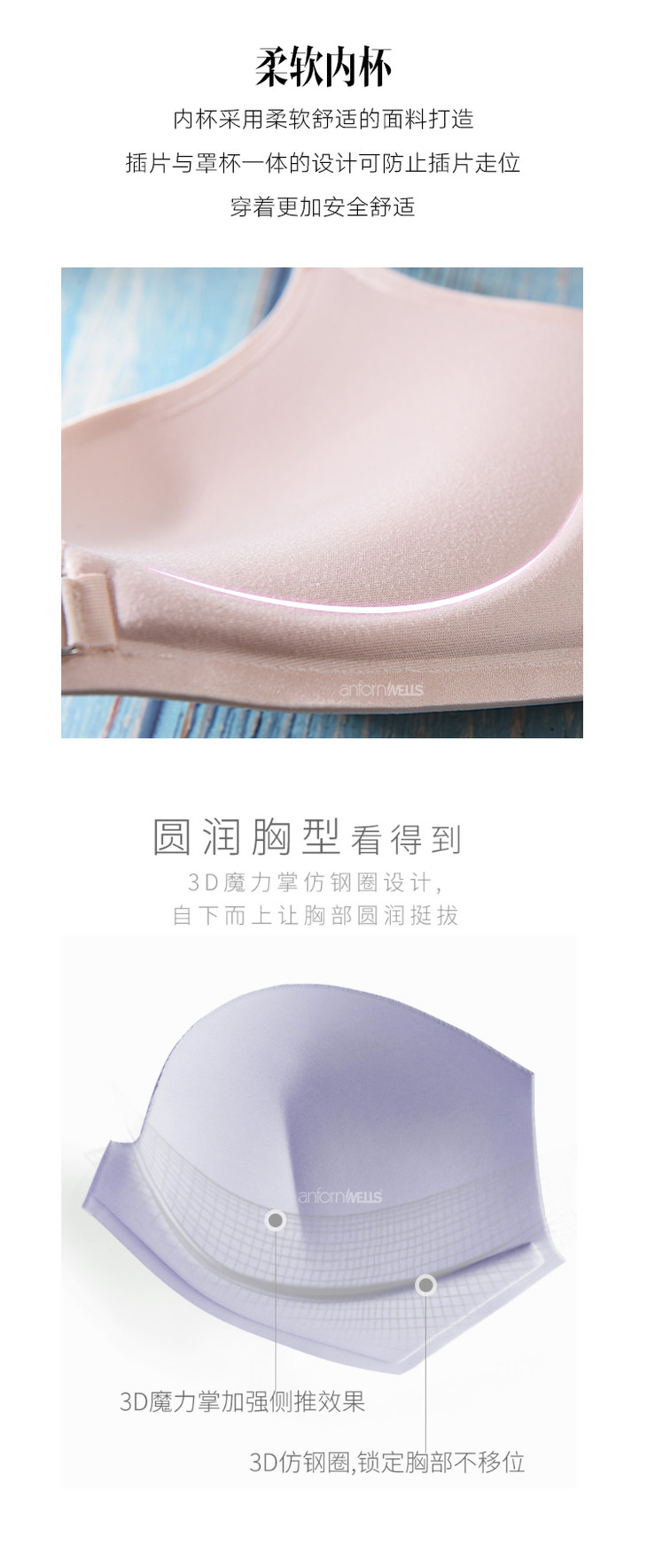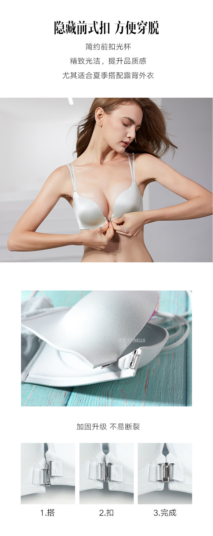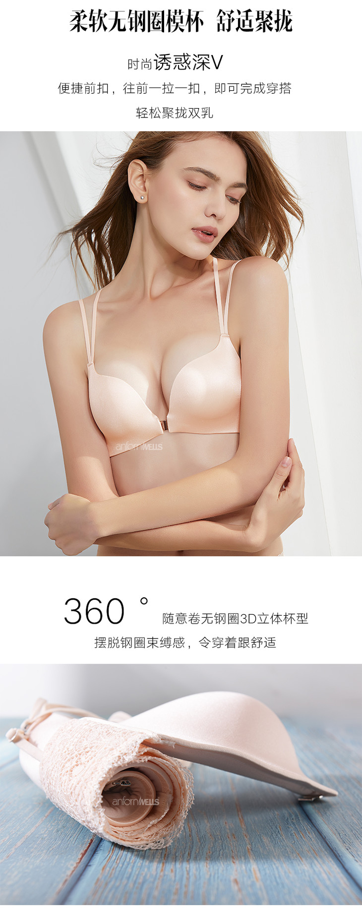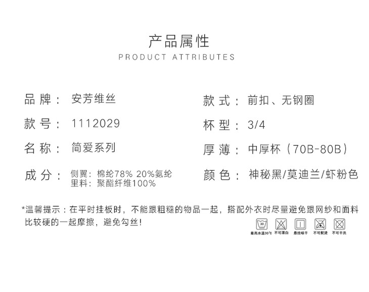 【39/2件】安芳维丝简爱系列时尚前扣,简约柔软光面,性感美背文胸 1112029