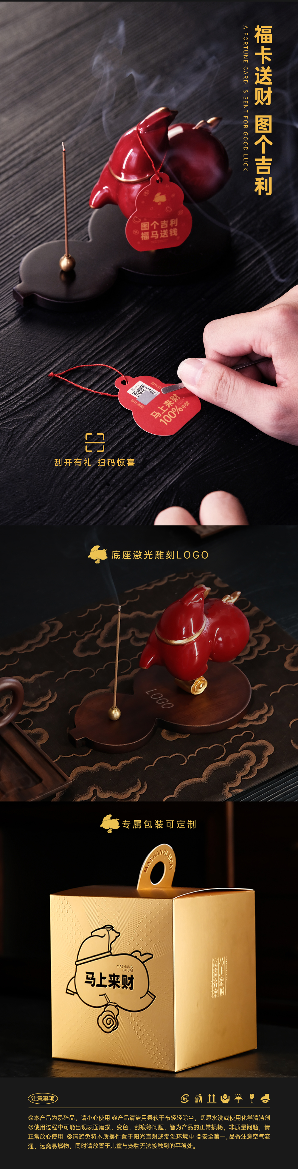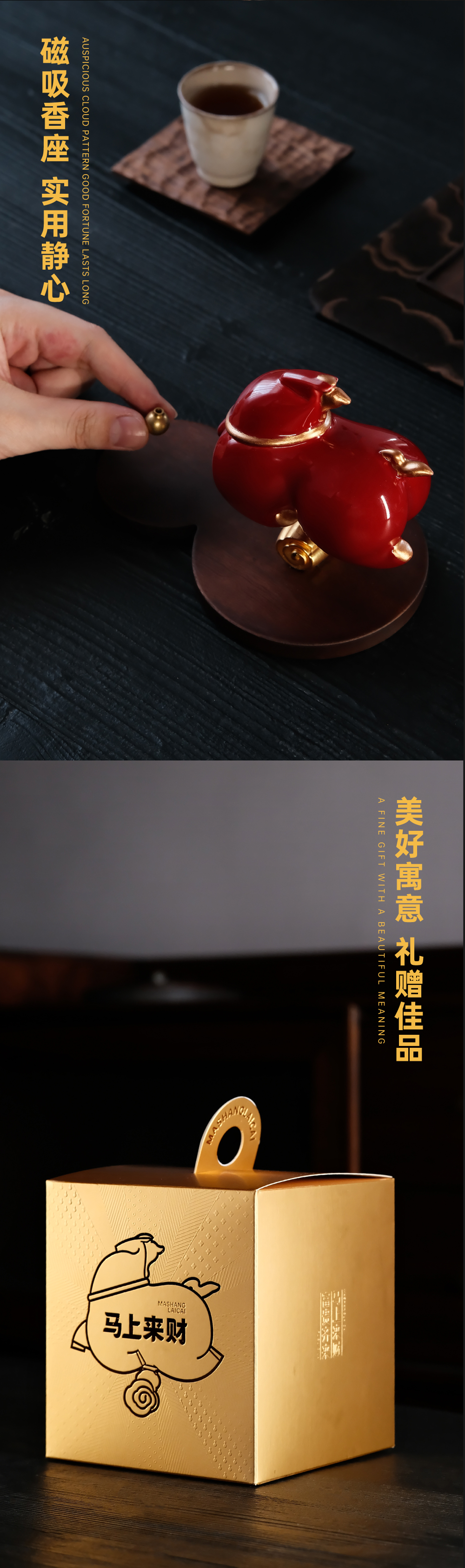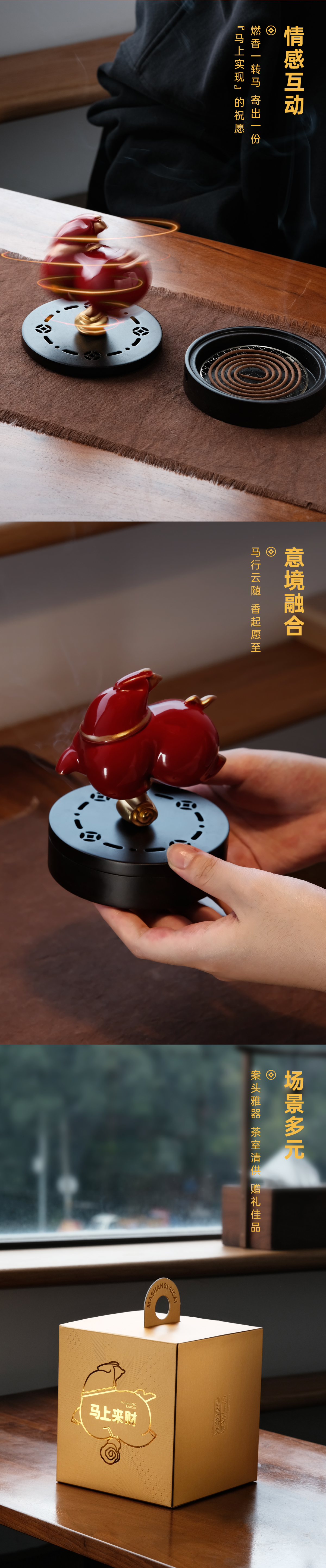 【四款马上来财】智能小夜灯礼盒、趣味祝福盘礼盒、线香香器礼盒、香炉香器礼盒