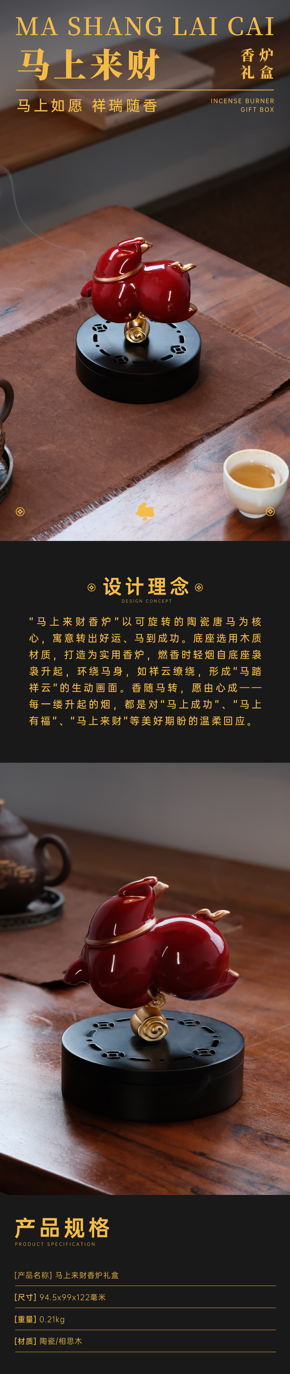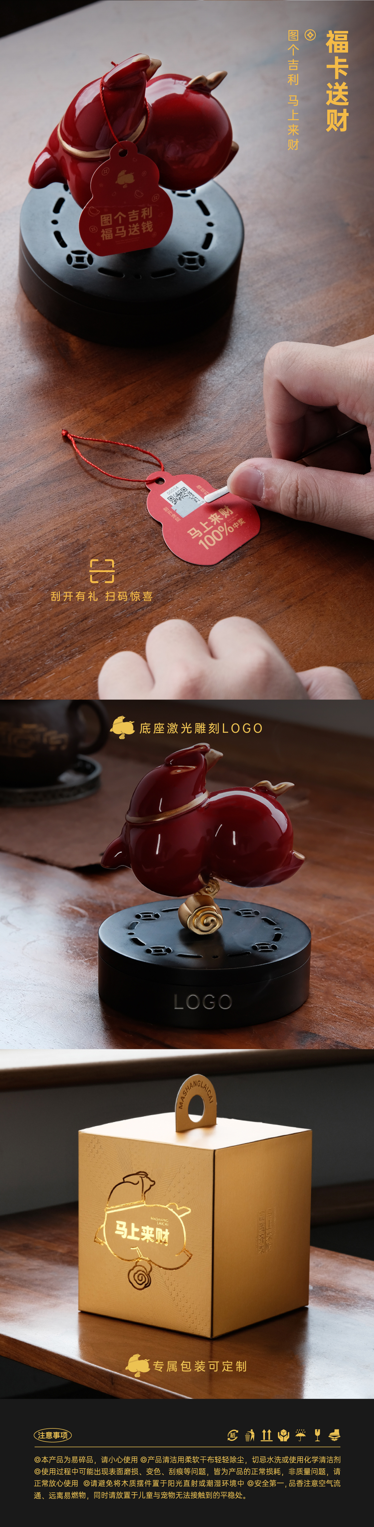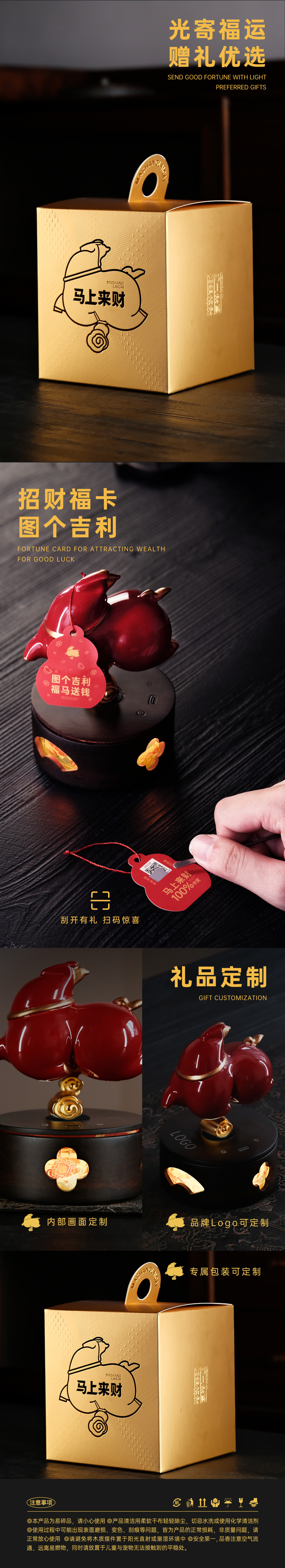 【四款马上来财】智能小夜灯礼盒、趣味祝福盘礼盒、线香香器礼盒、香炉香器礼盒