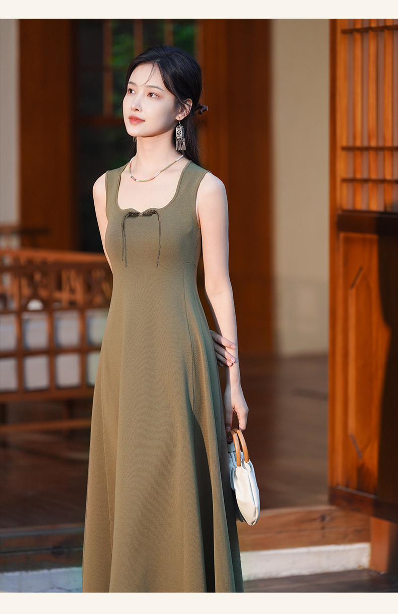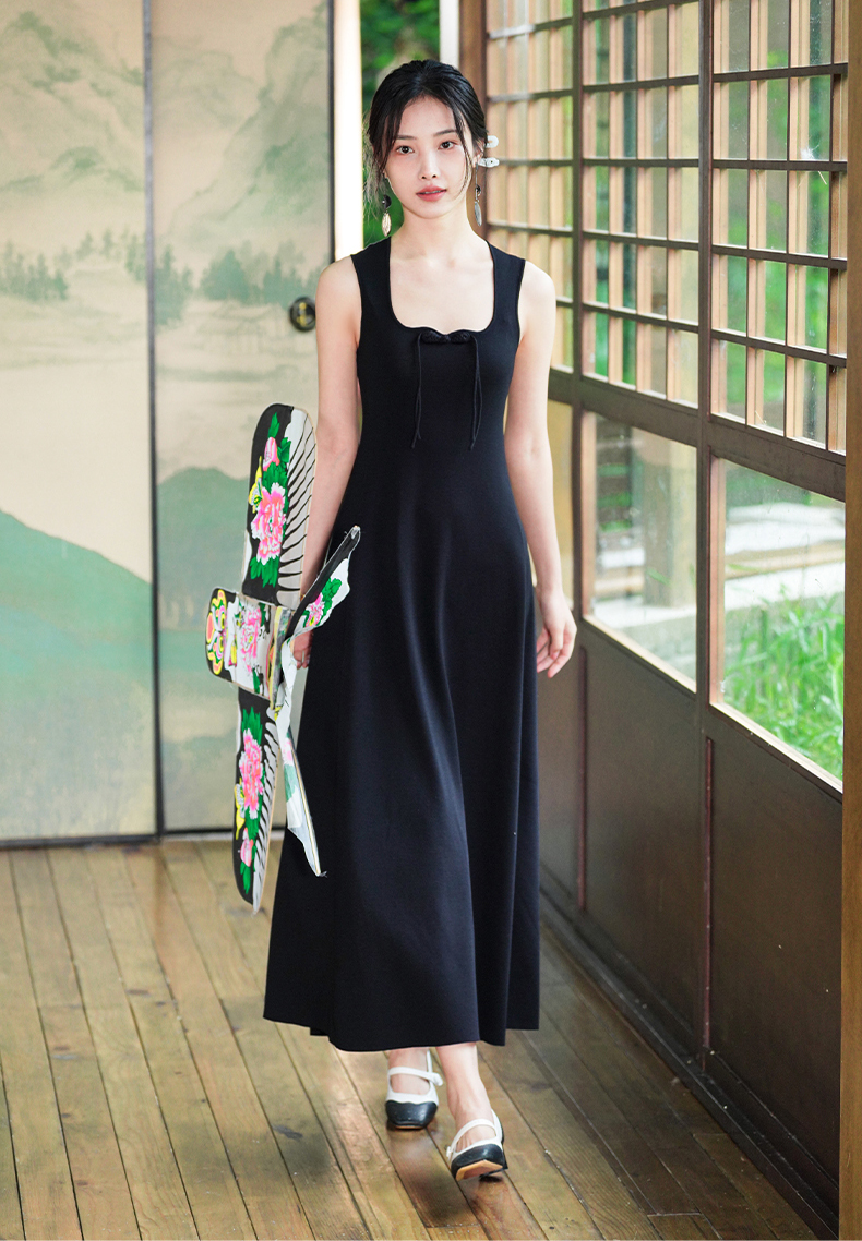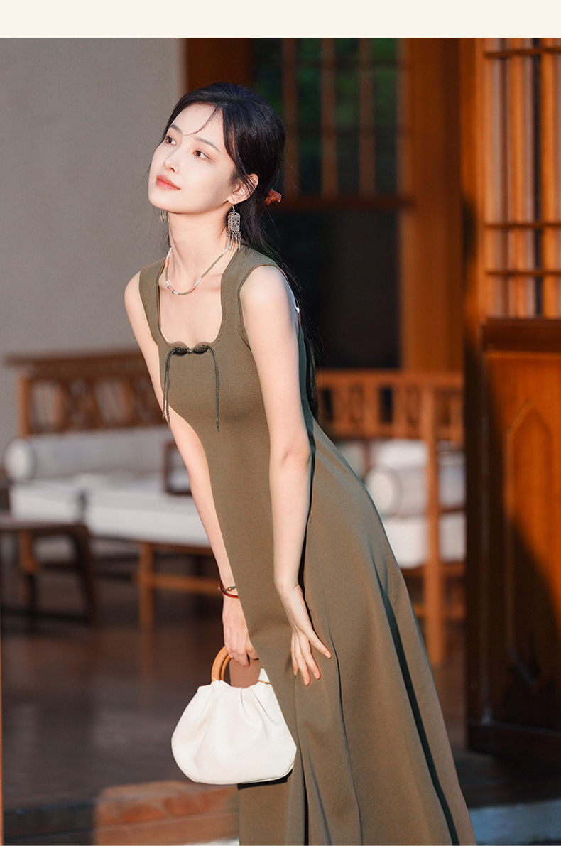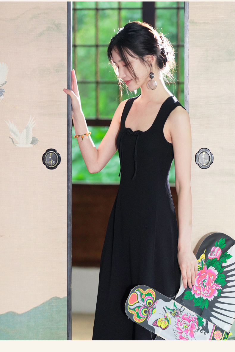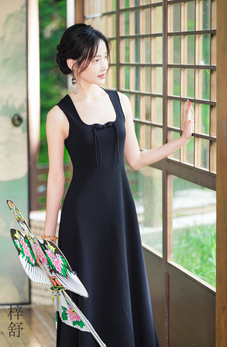 逸红颜梓舒2025夏新款国风感高弹力针织束型修身背心式x型吊带裙