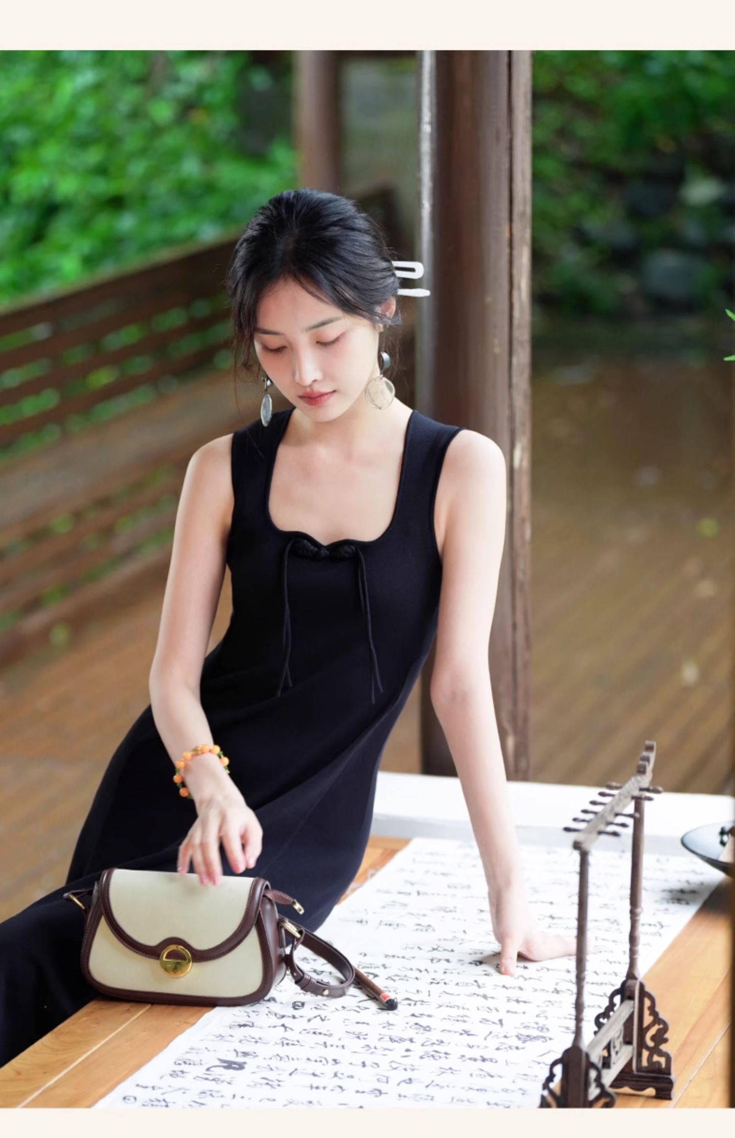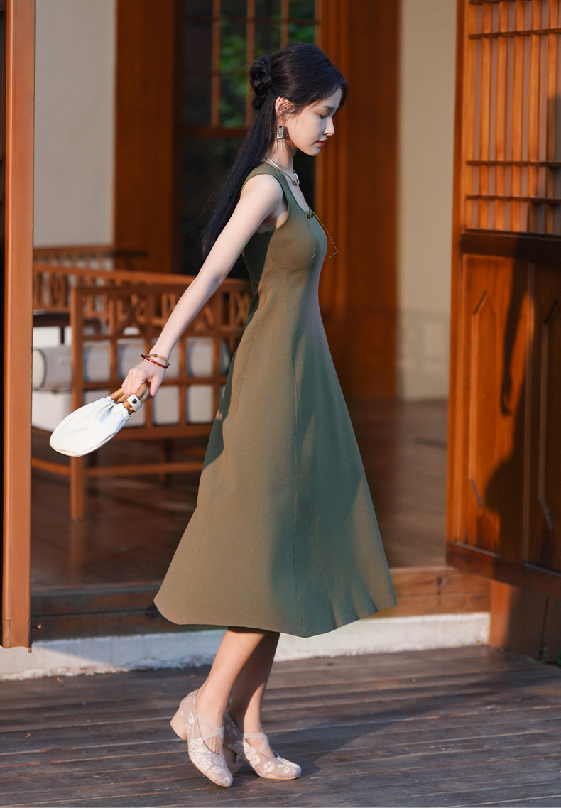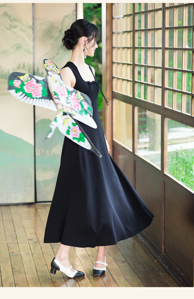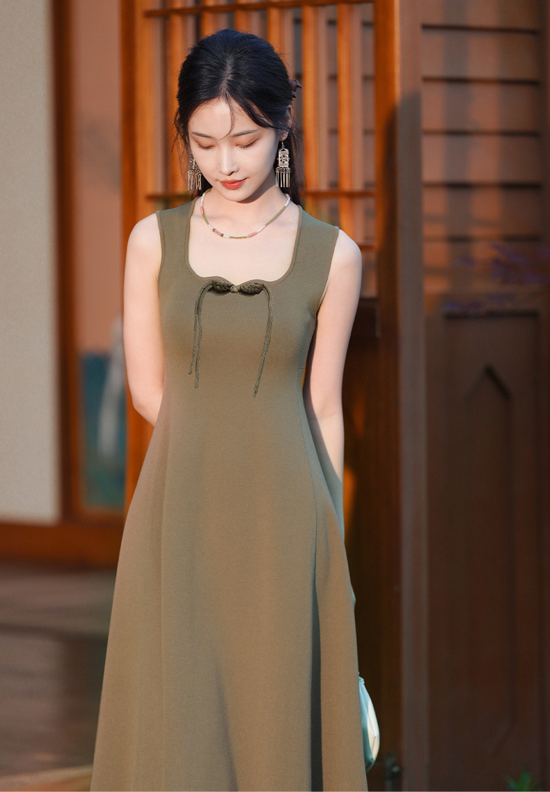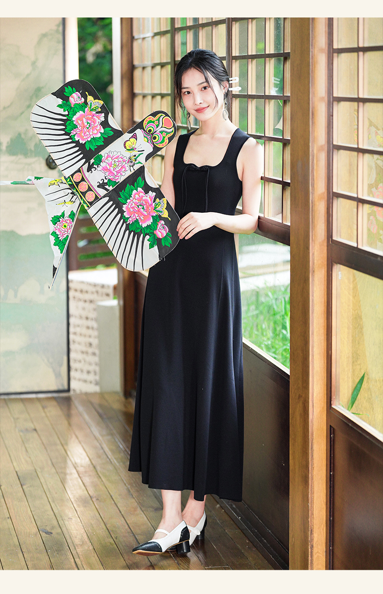 逸红颜梓舒2025夏新款国风感高弹力针织束型修身背心式x型吊带裙