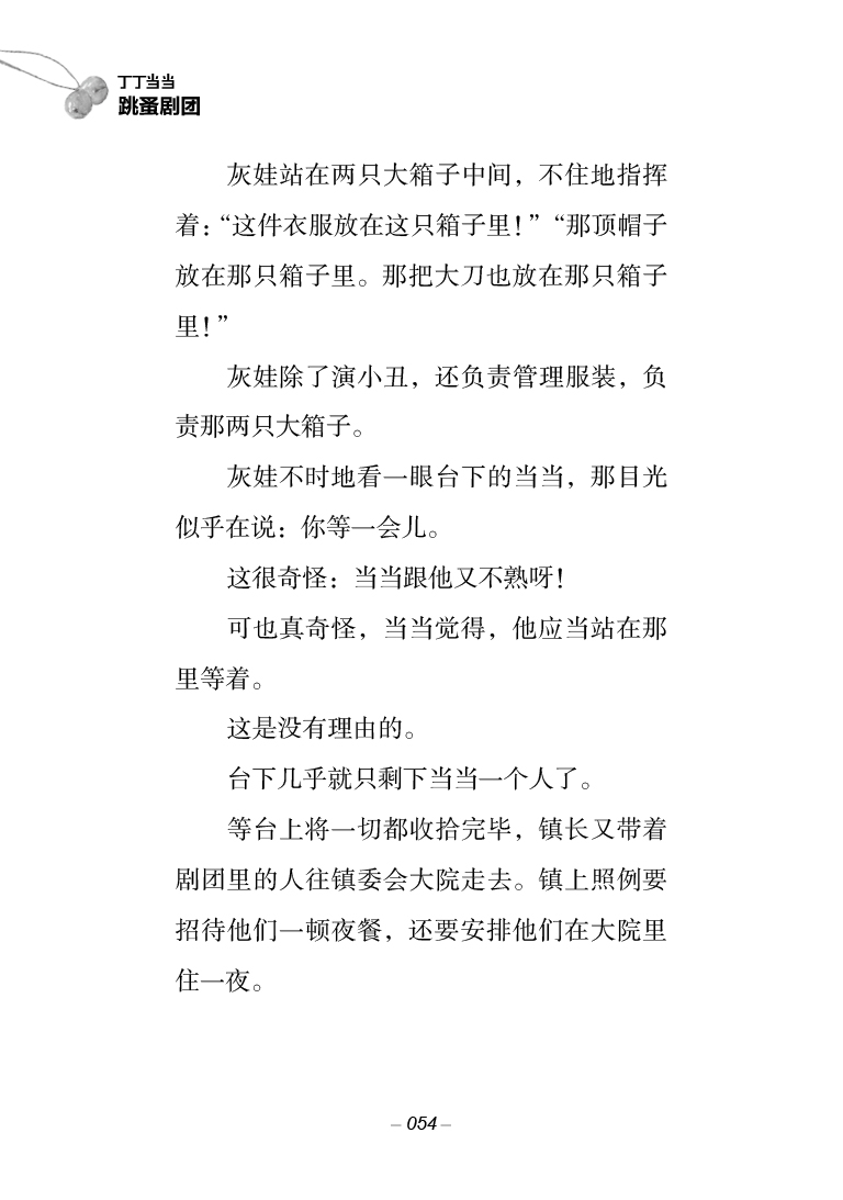 当当的漂泊之旅和丁丁一样,也从一列火车上拉开序幕,随后经历了公路上的游荡、人群中的彷徨……最后,命运将当当带到了一个乡村剧团——跳蚤剧团。在这里,他邂逅了一个与他有着相似遭遇的男孩儿——在剧团里扮演小丑赖以生存的灰娃。