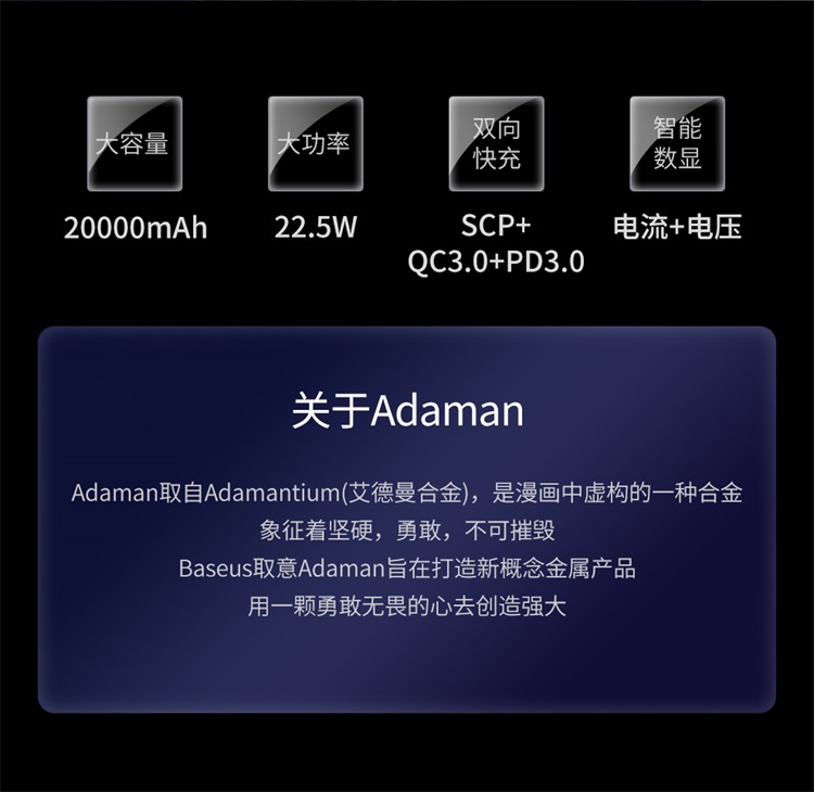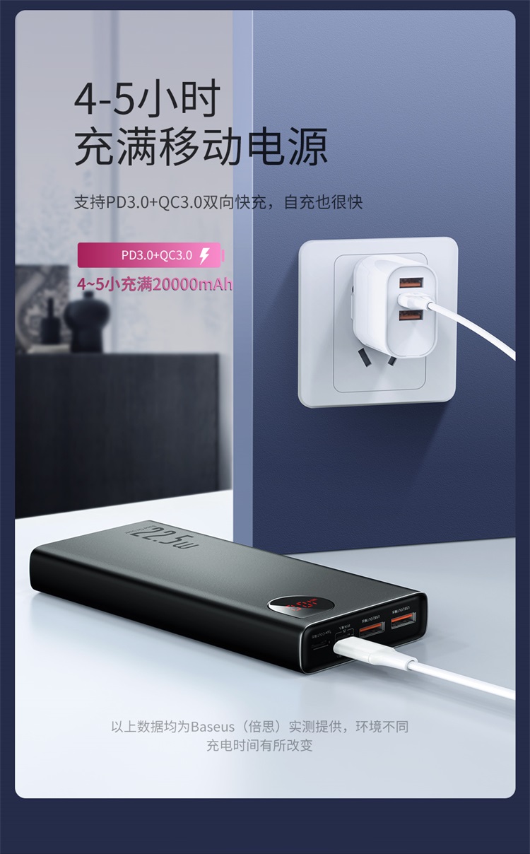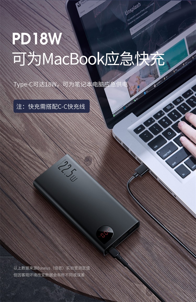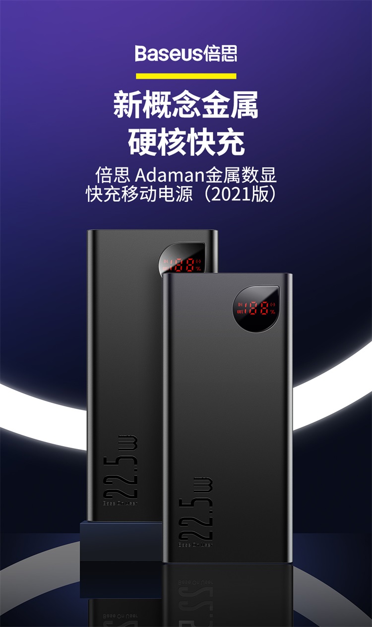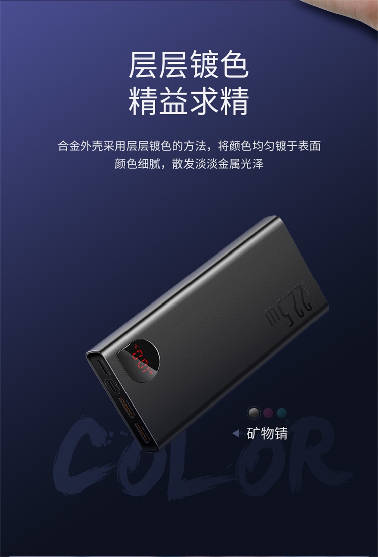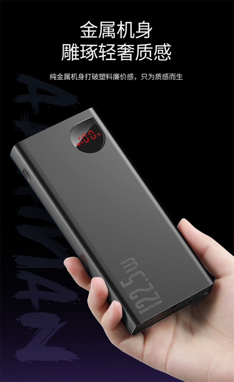 倍思 Adaman金属数显快充移动电源 20000mAh 22.5W 黑色 充电宝