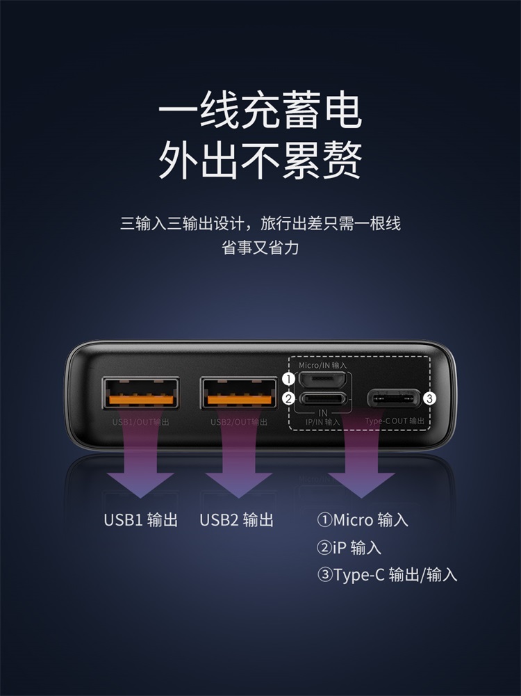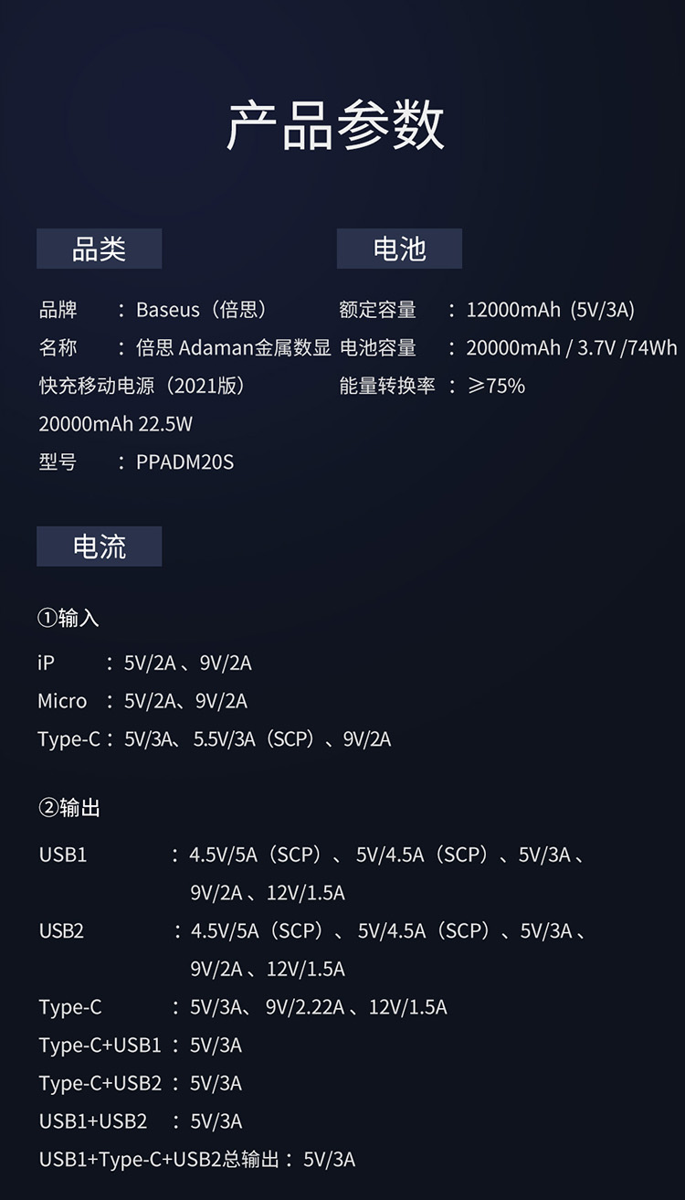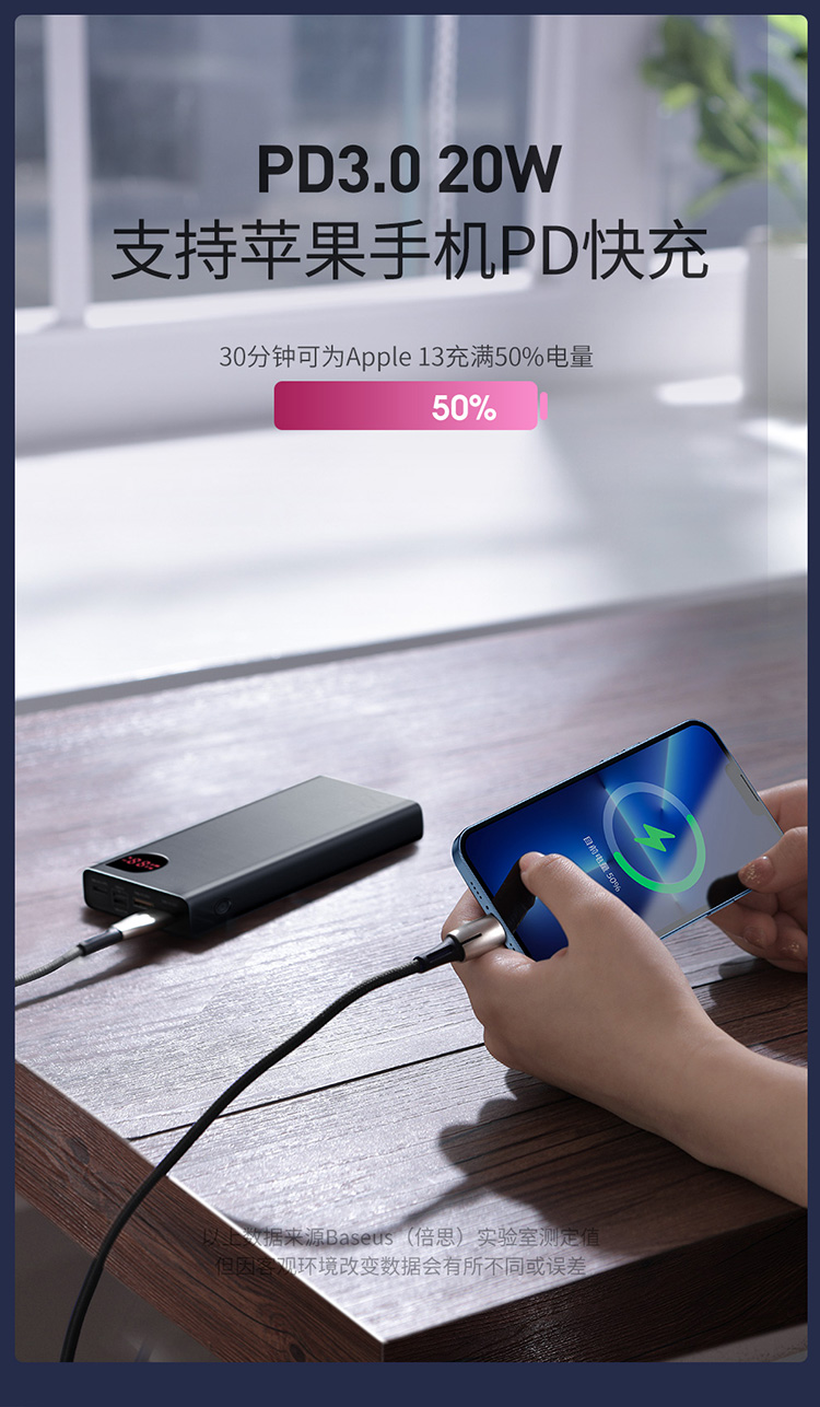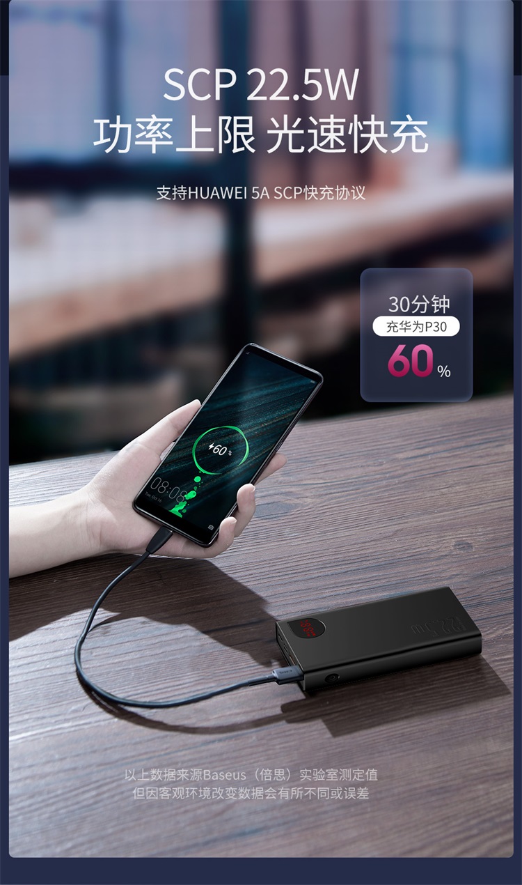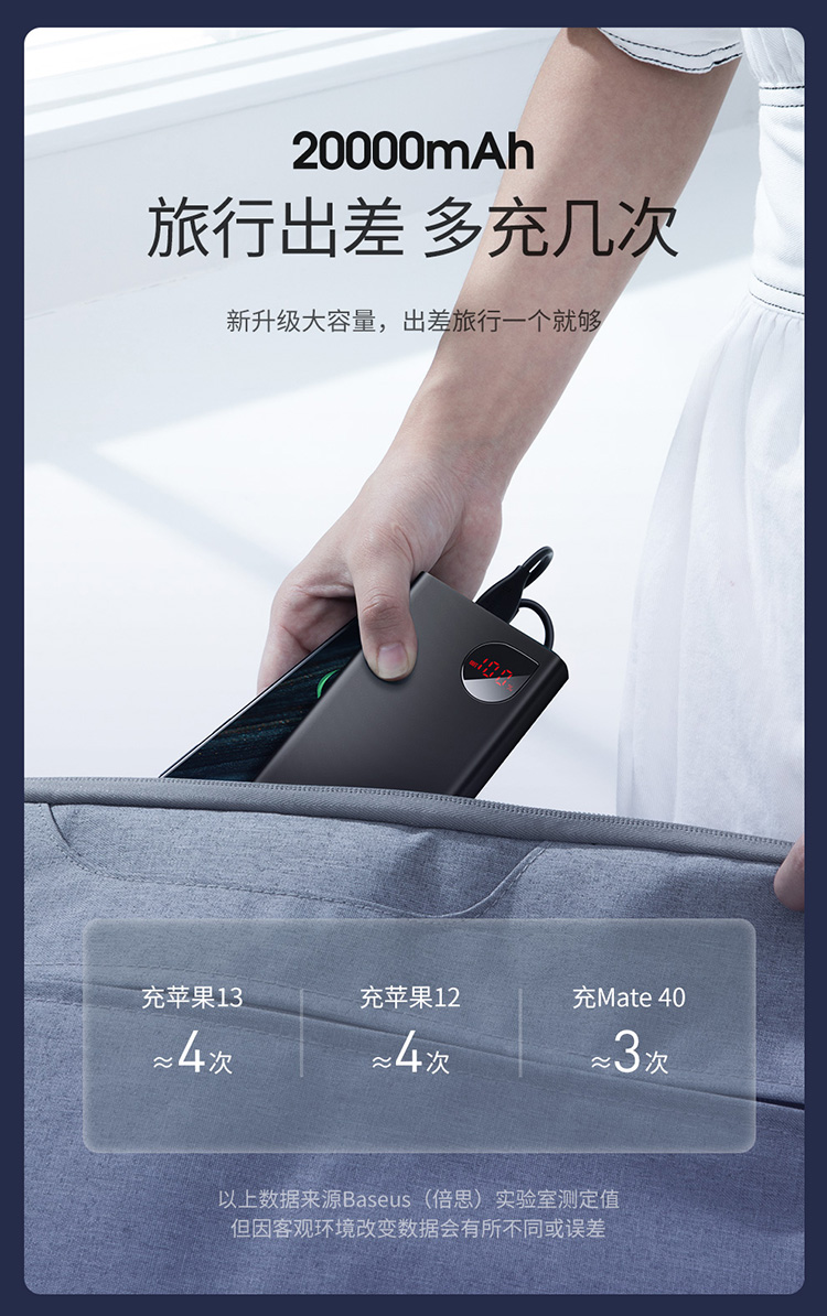 倍思 Adaman金属数显快充移动电源 20000mAh 22.5W 黑色 充电宝