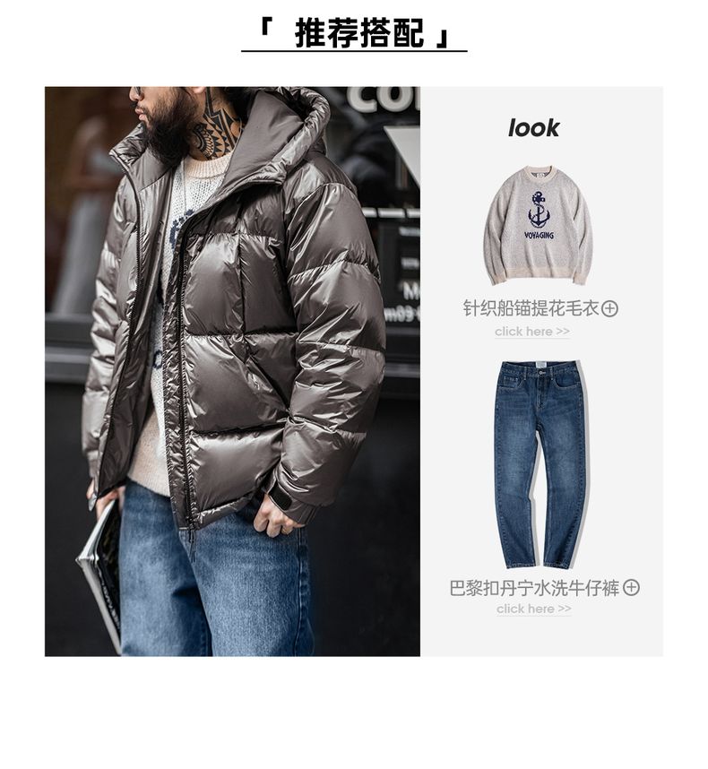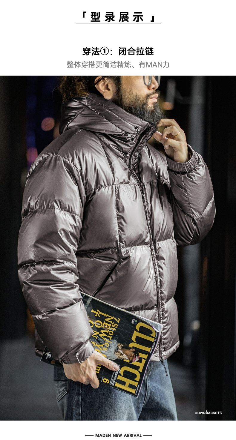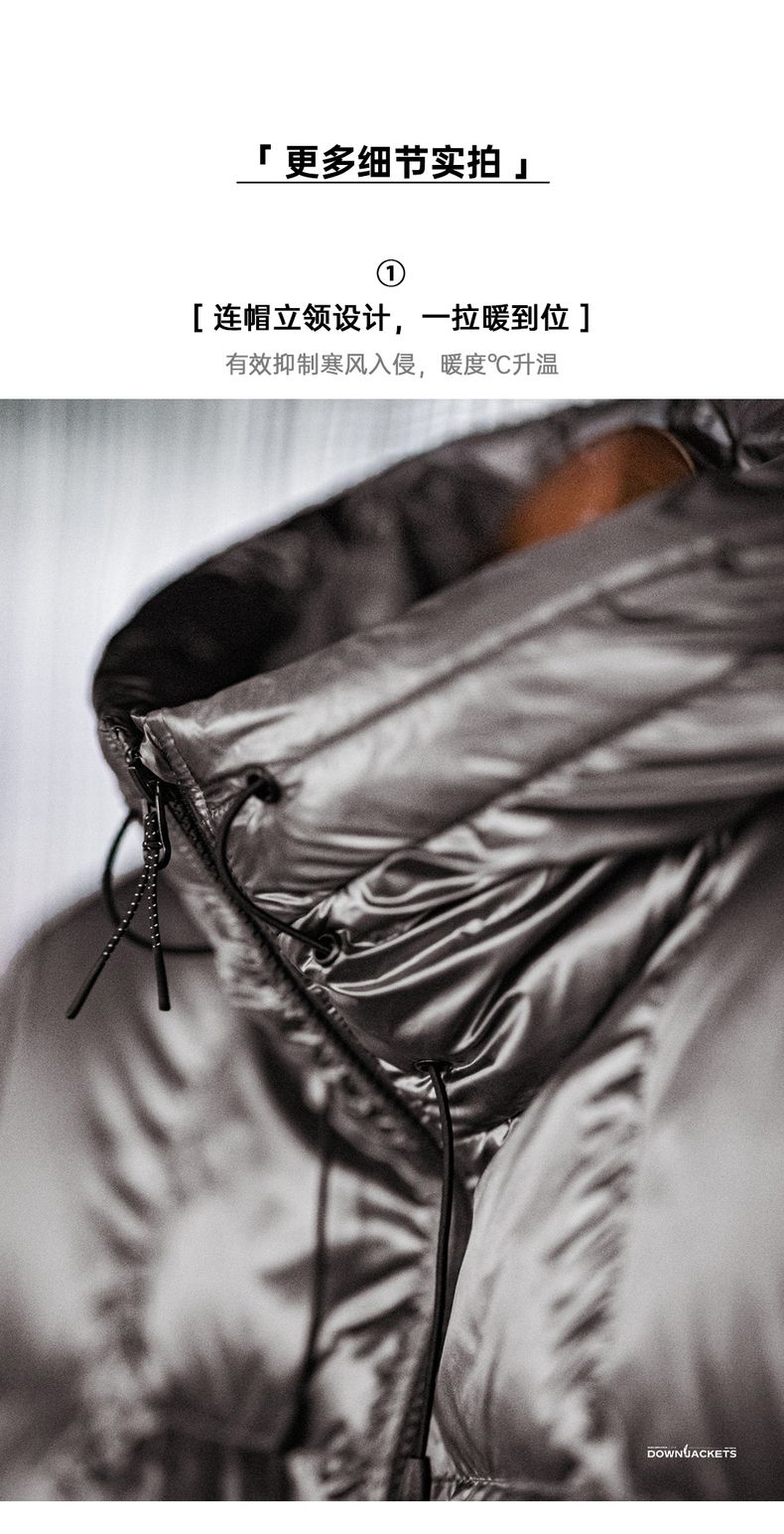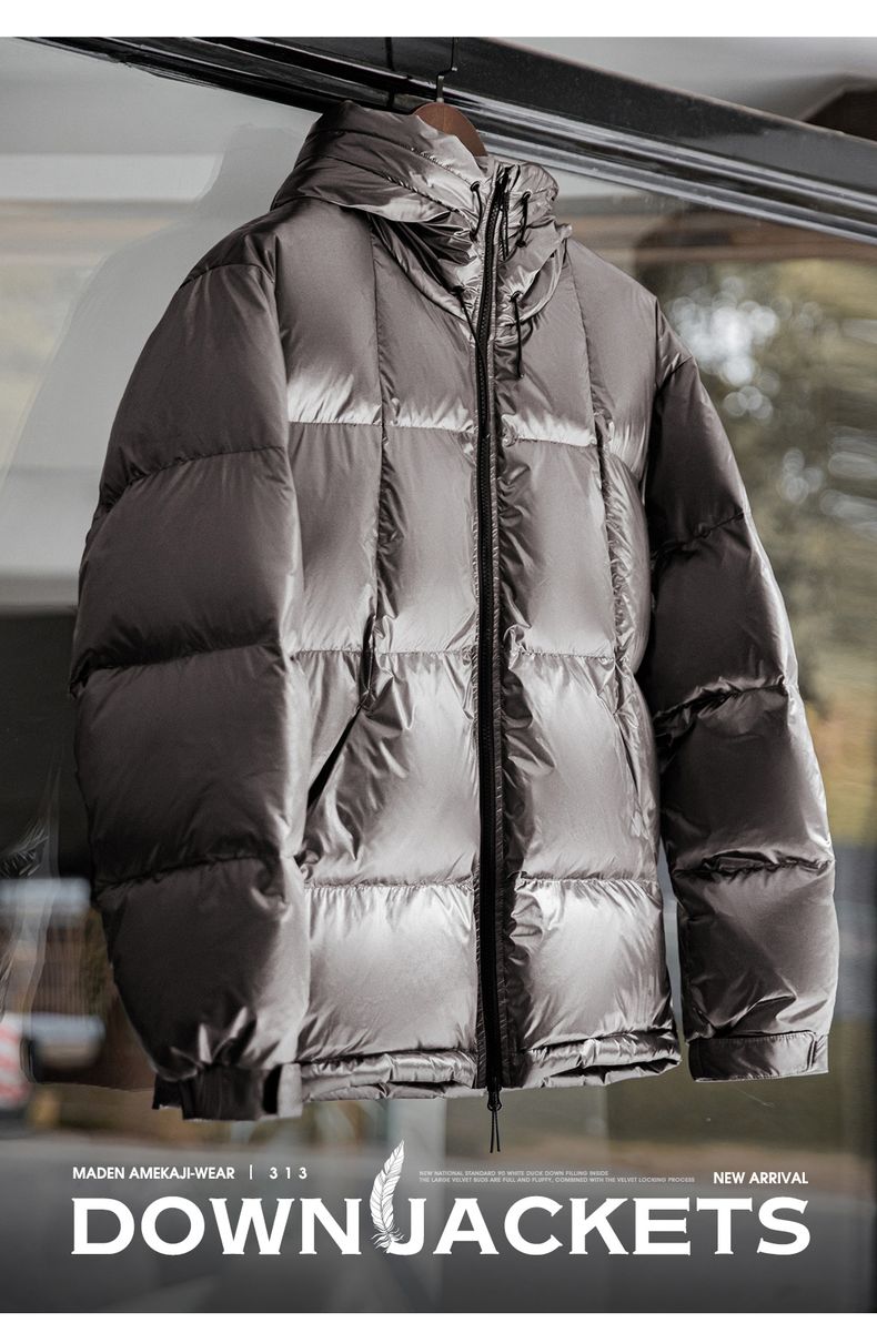 工装优选美式亮面连帽羽绒服90白鸭绒加厚保暖立领面包服外套男冬