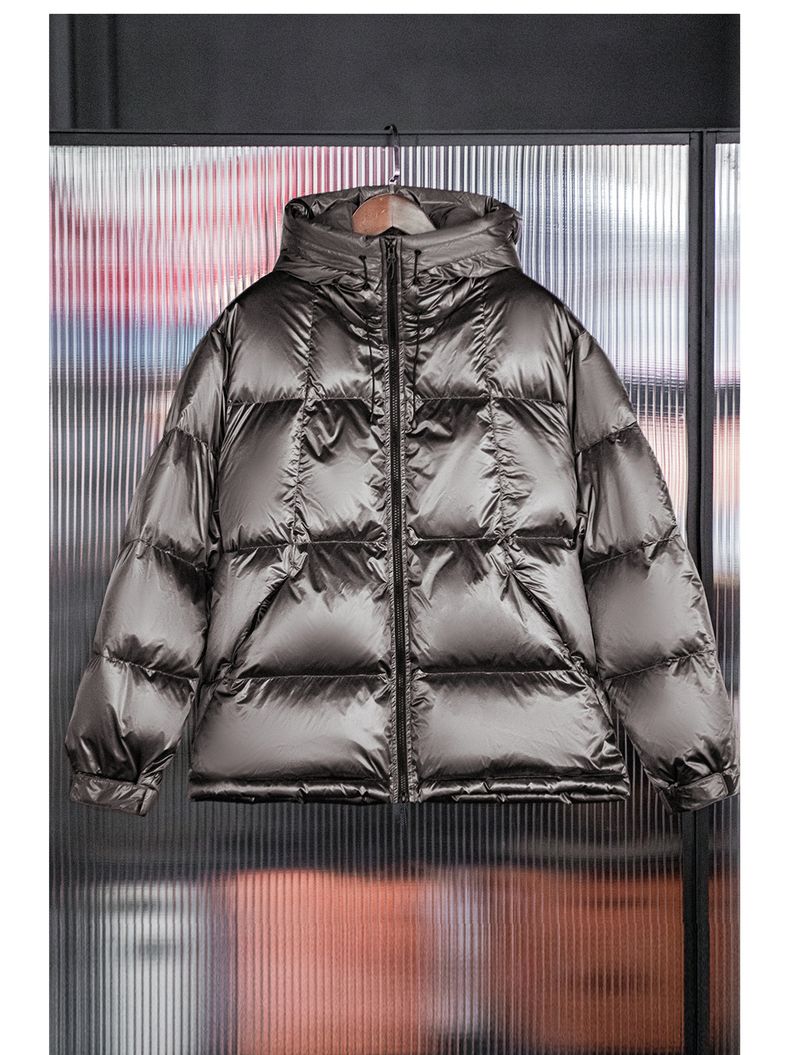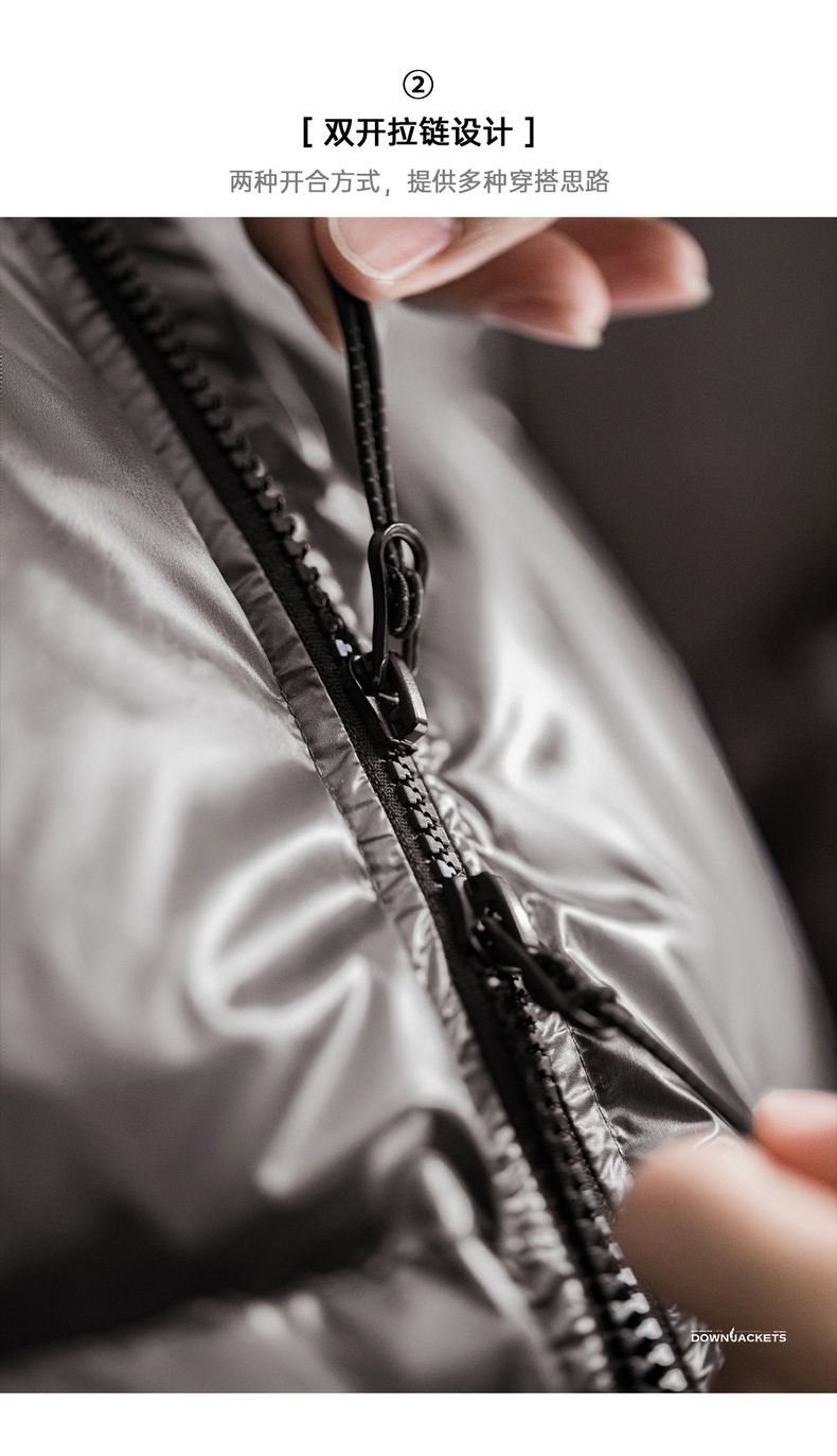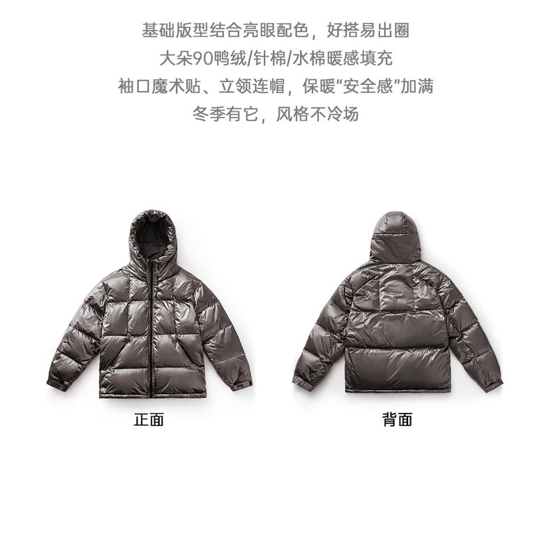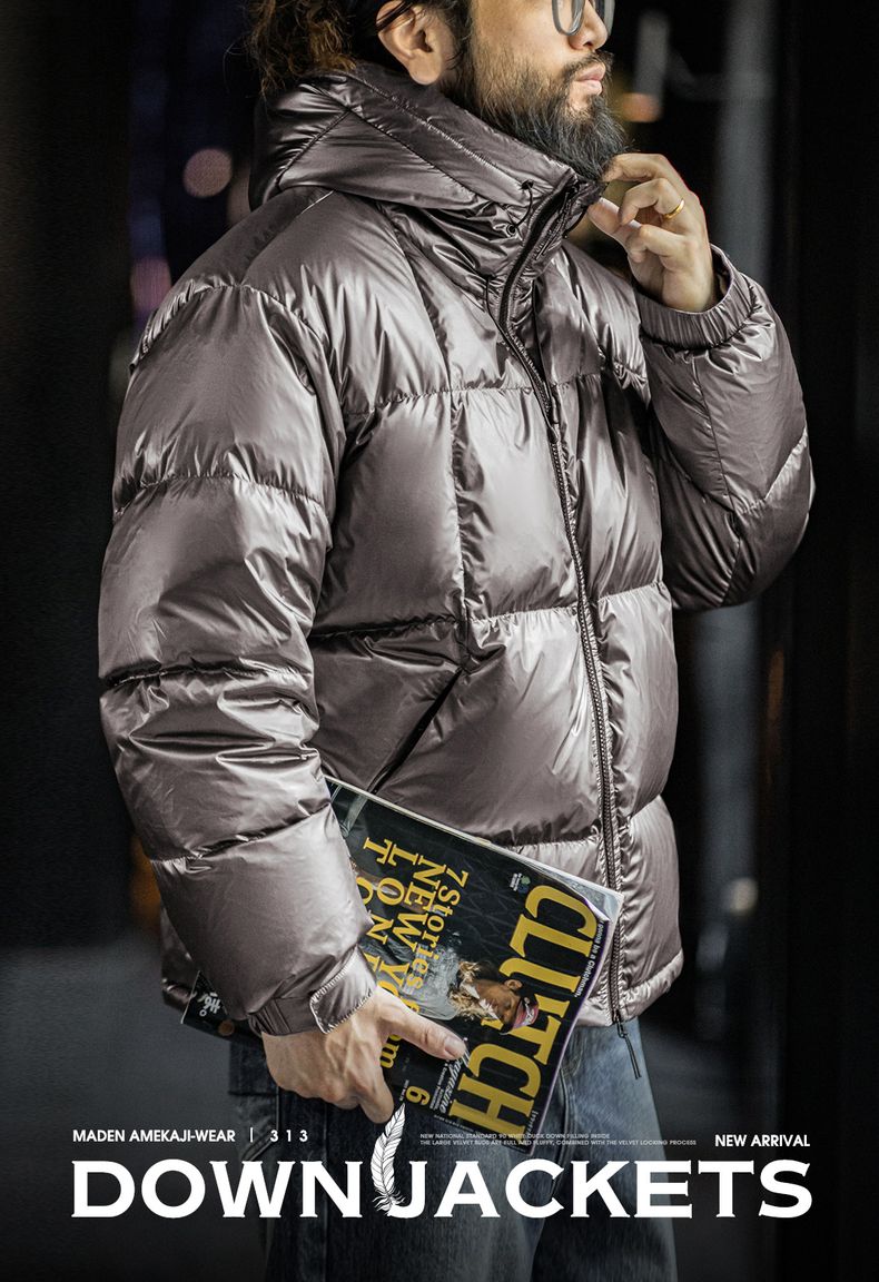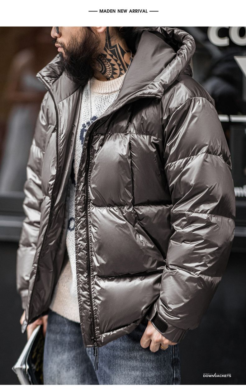 工装优选美式亮面连帽羽绒服90白鸭绒加厚保暖立领面包服外套男冬