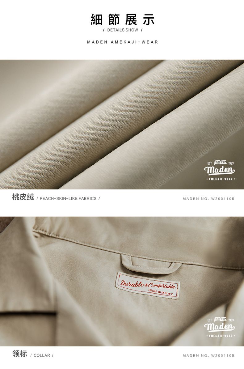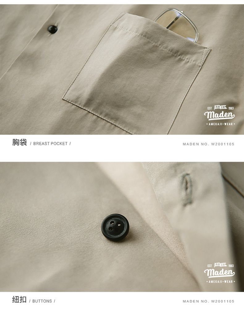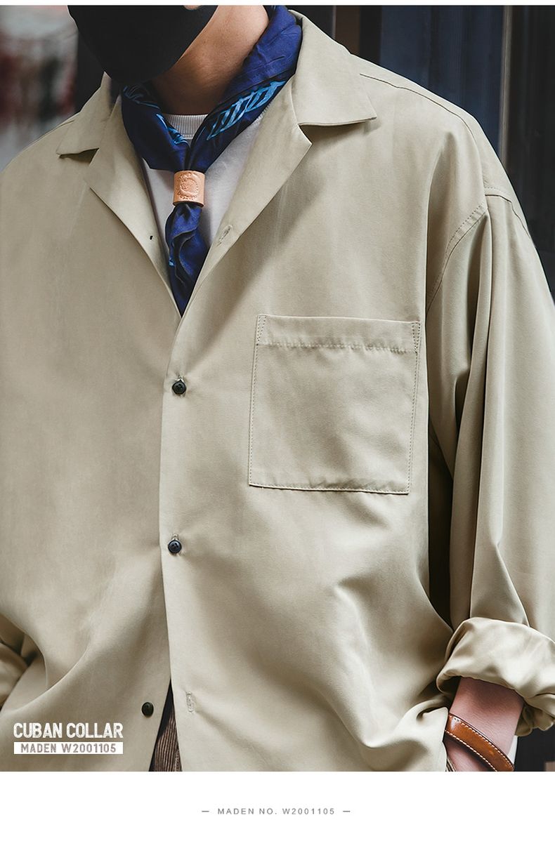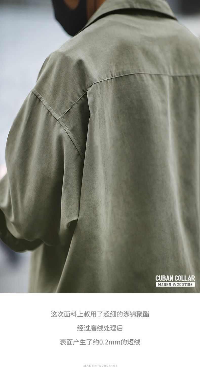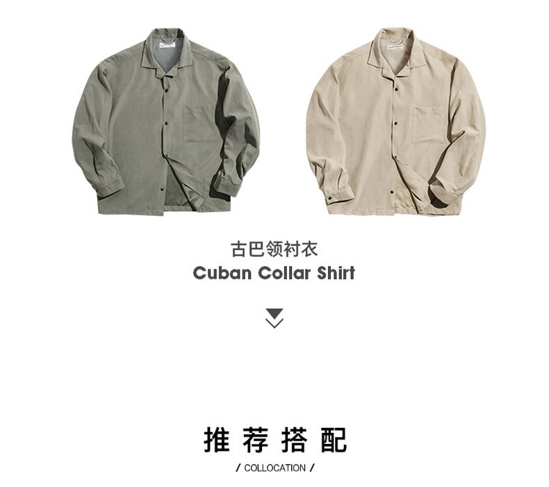 马登工装法式复古长袖古巴领薄衬衫那不勒斯美式衬衣桃皮绒男春季
